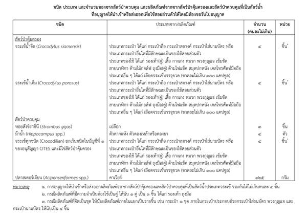 - Permission to bring in or take out carcasses of controlled wildlife and products derived from controlled wildlife classified under the types above must not exceed 4 pieces in total, except where otherwise specified.