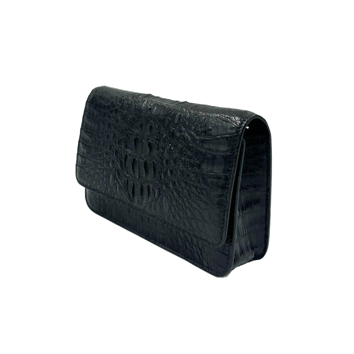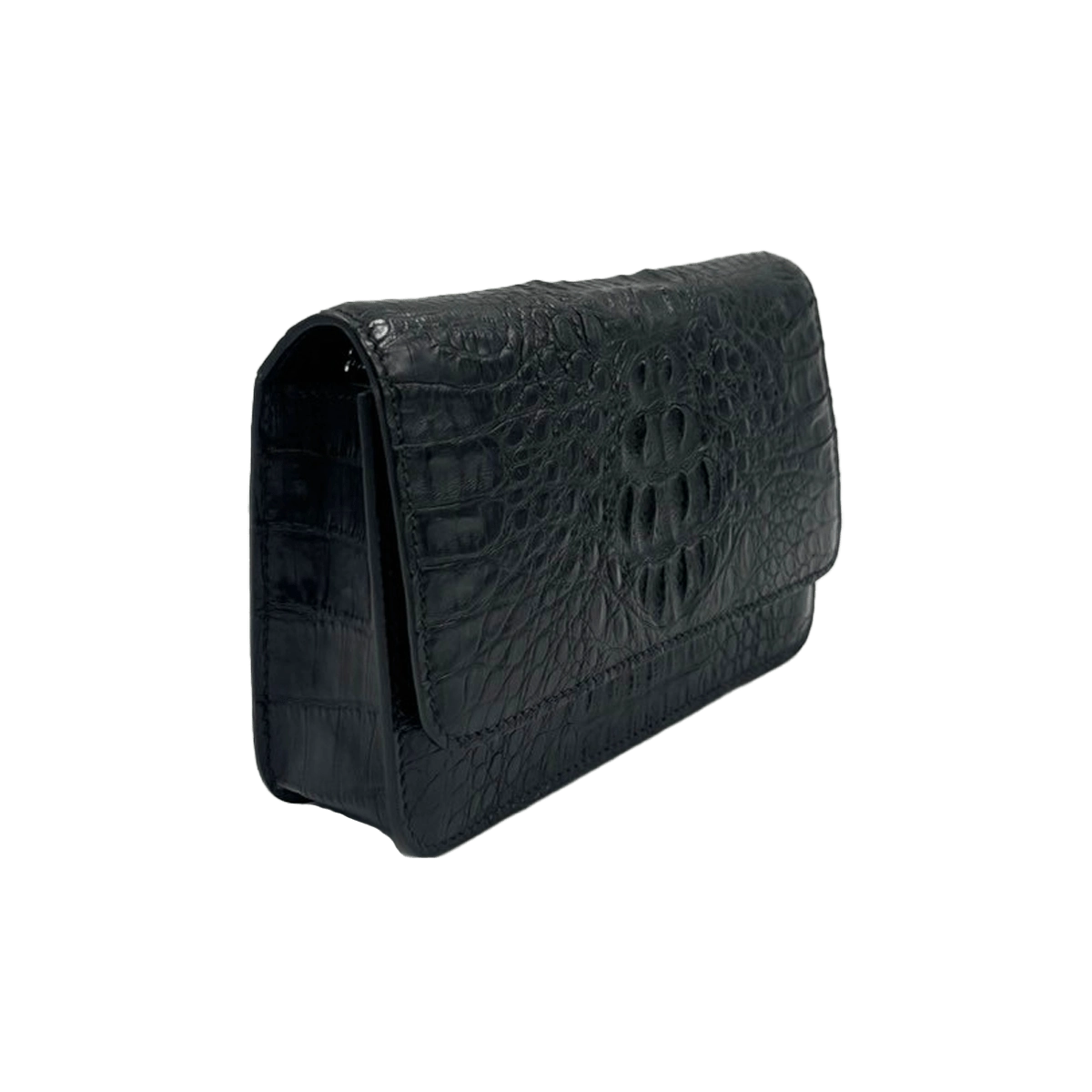 Barzaar is a flap top clutch bag designed by Bangkok Bootery expert craftsman who are No.1 in Thailand. This evening bag is a medium size clutch with a long removable strap handcrafted from start to finish. “Barzaar” with 19cm width is one of Bangkok Bootery rectangular ladies clutch that is classy and durable with natural exotic animal texture and crafted from top grade crocodile small caiman chin breed skin available in a variety of matte colors. Perfect design for gorgeous ladies with a long same leather removable strap, one spacious interior compartment with a long zip pocket, 6 card slots that easily fits your phone, car key, cardholder and more and one exterior pocket. “Barzaar” is safe with a magnet closure and can be matched with your formal dress and shoes for special events.