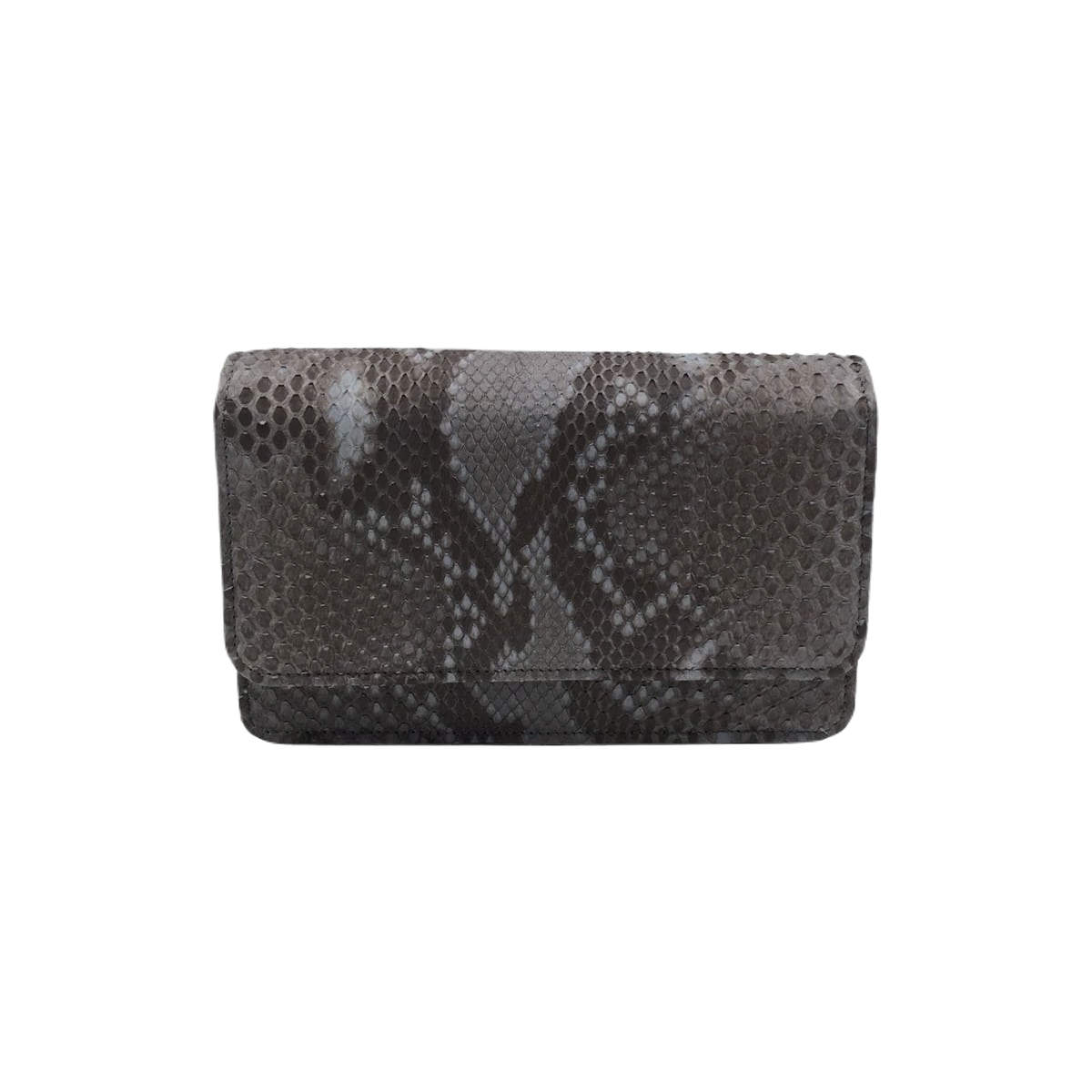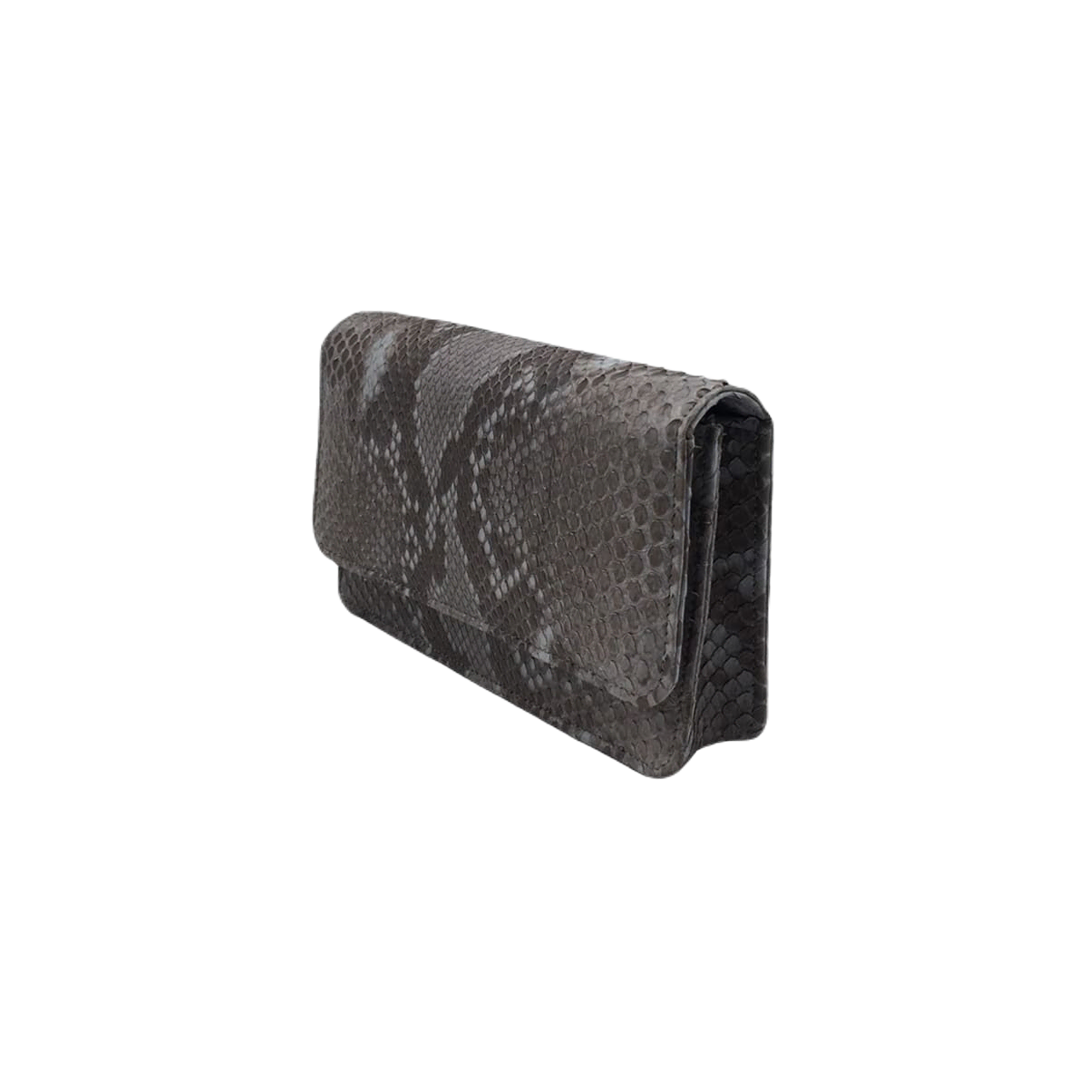 Barzaar is a flap top clutch bag designed by Bangkok Bootery expert craftsman who are No.1 in Thailand. This evening bag is a medium size clutch with a long removable strap handcrafted from start to finish. “Barzaar” with 19cm width is one of Bangkok Bootery rectangular ladies clutch that is classy and nice with natural exotic snake texture and crafted from top grade python snake back skin available in a variety of matte colors.