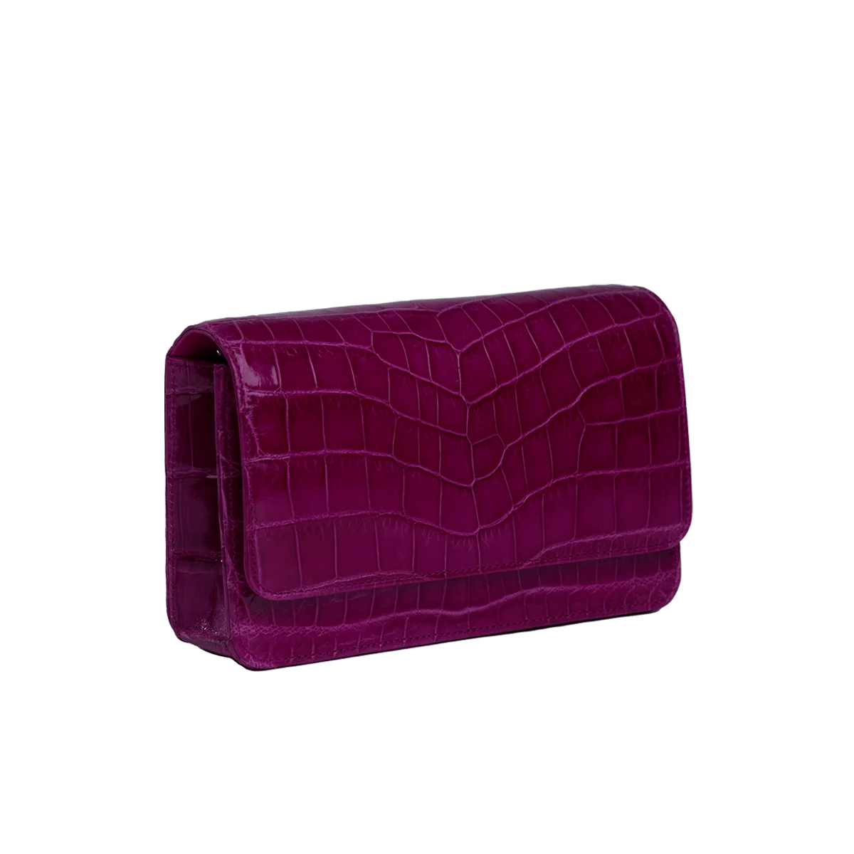 Barzaar is a flap top clutch bag designed by Bangkok Bootery expert craftsman who are No.1 in Thailand. This evening bag is a medium size clutch with a long removable strap handcrafted from start to finish. “Barzaar” with 19cm width is one of Bangkok Bootery rectangular ladies clutch that is classy and durable with natural exotic animal texture and crafted from top grade crocodile belly skin available in a variety of shiny colors. Perfect design for gorgeous ladies with a long same leather removable strap, one spacious interior compartment with a long zip pocket, 6 card slots that easily fits your phone, car key, cardholder and more and one exterior pocket. “Barzaar” is safe with a magnet closure and can be matched with your formal dress and shoes for special events.