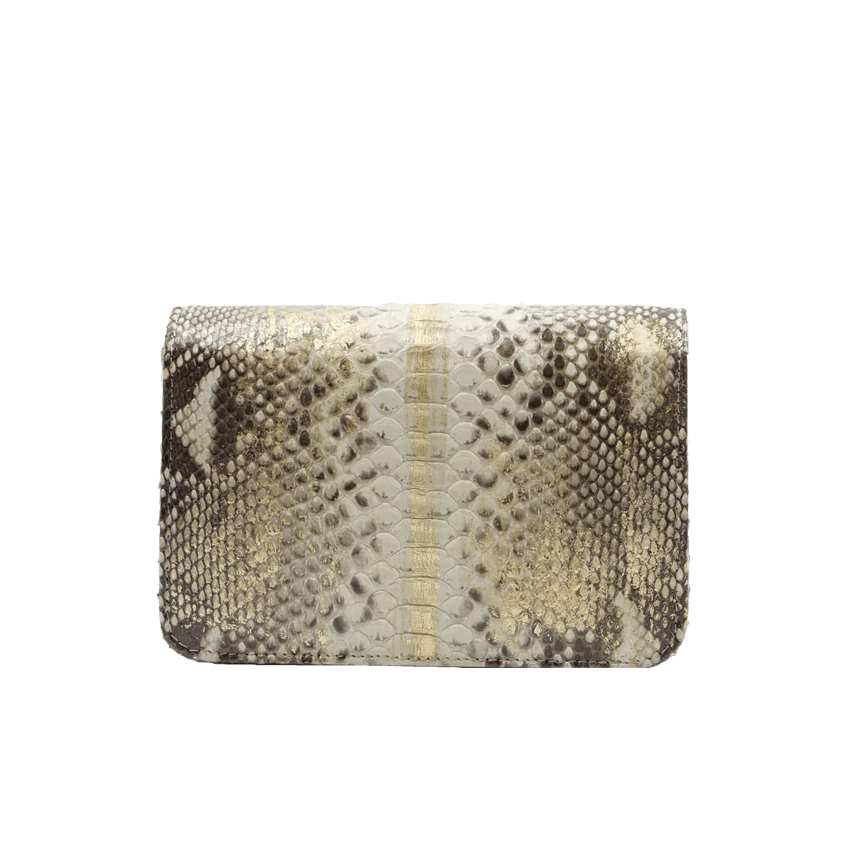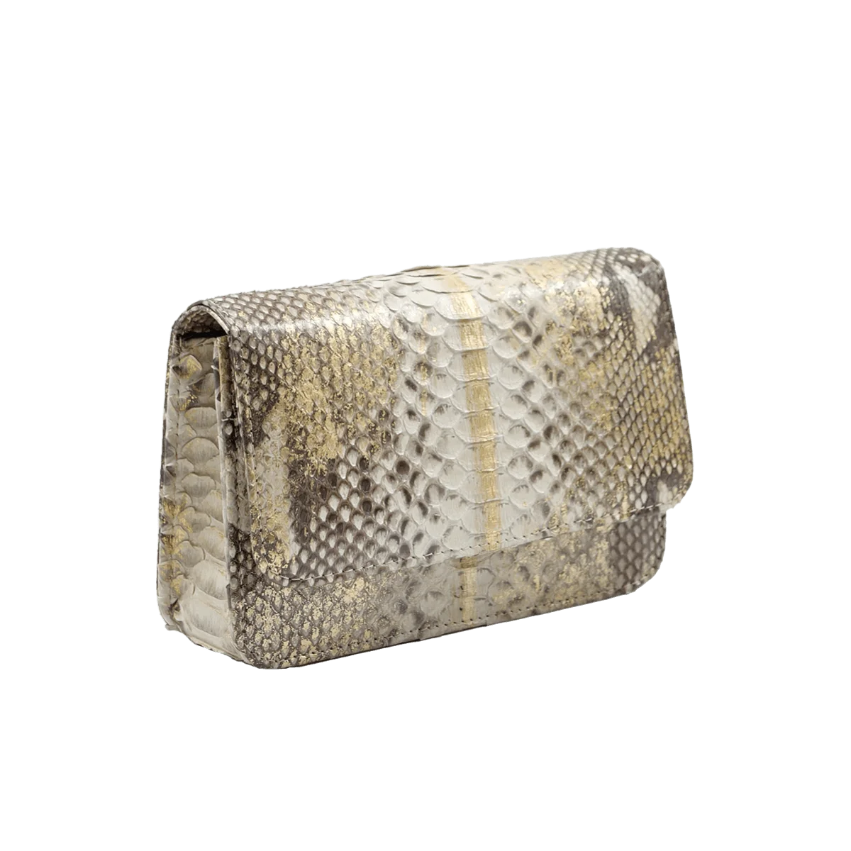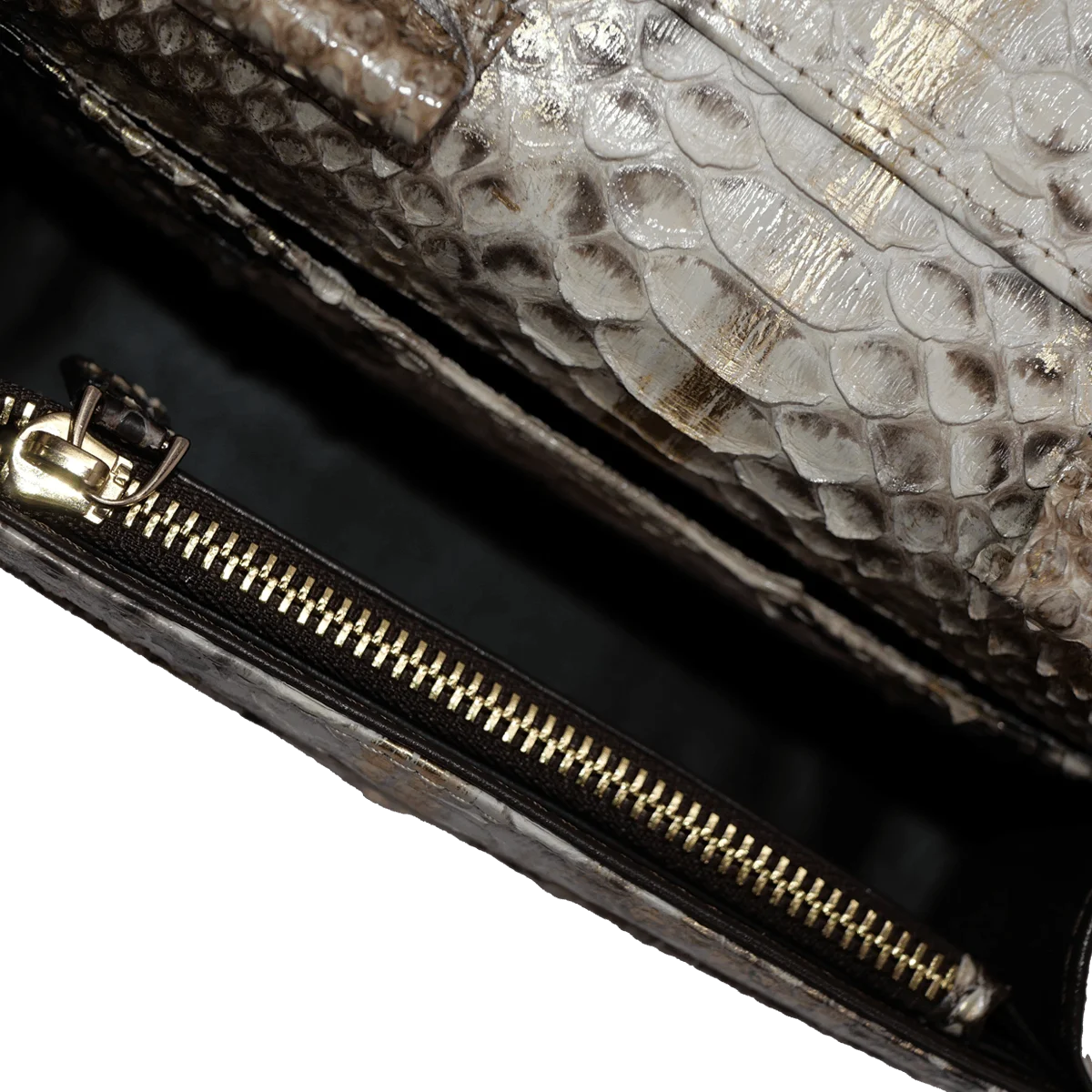 Barzaar is a flap top clutch bag designed by Bangkok Bootery expert craftsman who are No.1 in Thailand. This evening bag is a medium size clutch with a long removable strap handcrafted from start to finish. “Barzaar” with 19cm width is one of Bangkok Bootery rectangular ladies clutch that is classy and nice with natural exotic snake texture and crafted from top grade python snake belly skin available in a variety of matte colors.