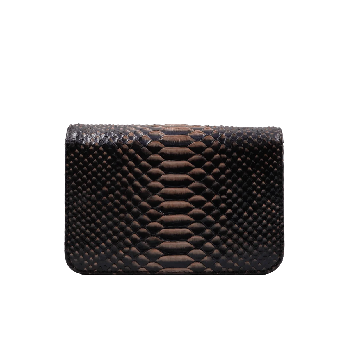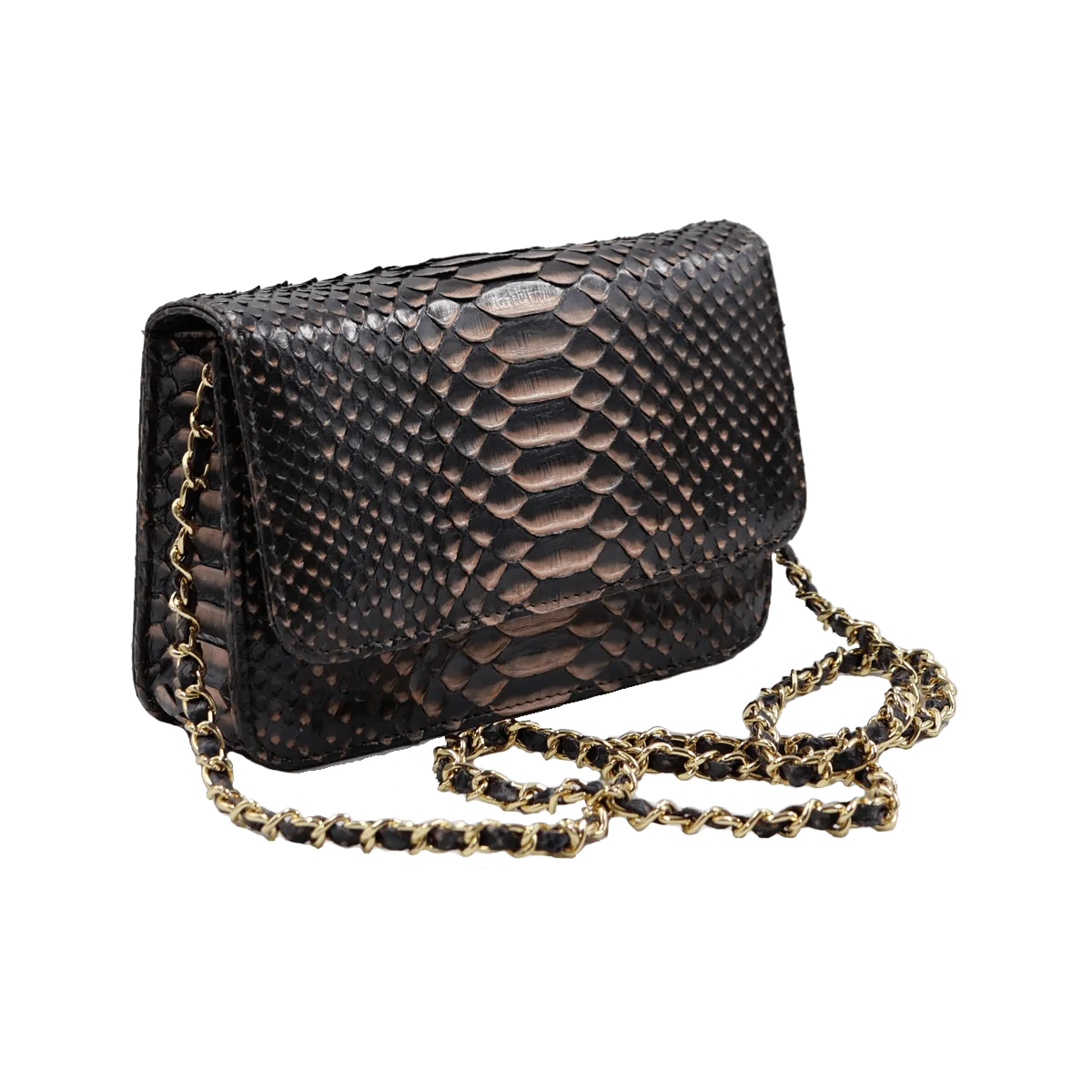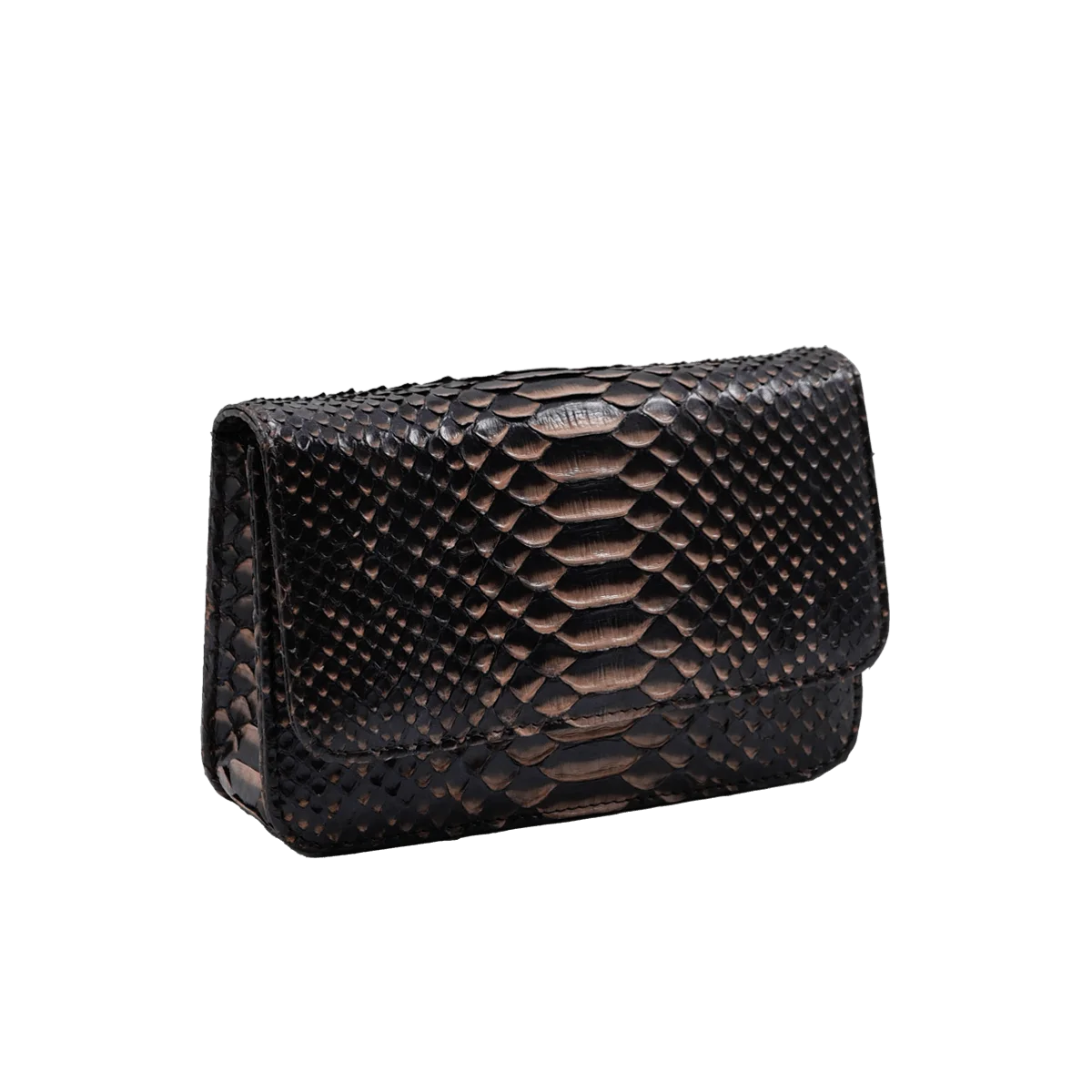 Barzaar is a flap top clutch bag designed by Bangkok Bootery expert craftsman who are No.1 in Thailand. This evening bag is a medium size clutch with a long removable strap handcrafted from start to finish. “Barzaar” with 19cm width is one of Bangkok Bootery rectangular ladies clutch that is classy and nice with natural exotic snake texture and crafted from top grade python snake belly skin available in a variety of matte colors.