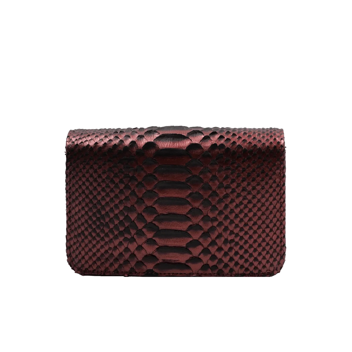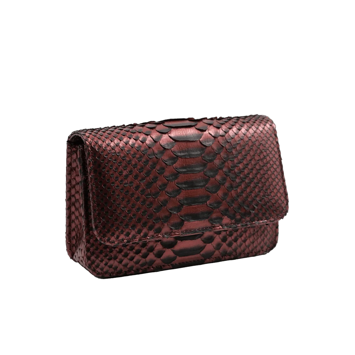 Barzaar is a flap top clutch bag designed by Bangkok Bootery expert craftsman who are No.1 in Thailand. This evening bag is a medium size clutch with a long removable strap handcrafted from start to finish. “Barzaar” with 19cm width is one of Bangkok Bootery rectangular ladies clutch that is classy and nice with natural exotic snake texture and crafted from top grade python snake belly skin available in a variety of matte colors.