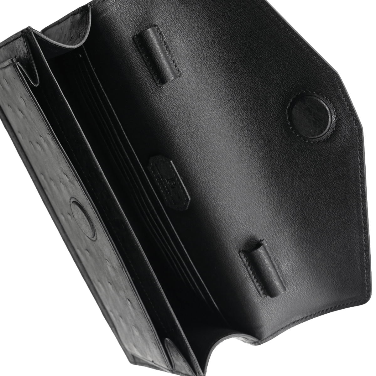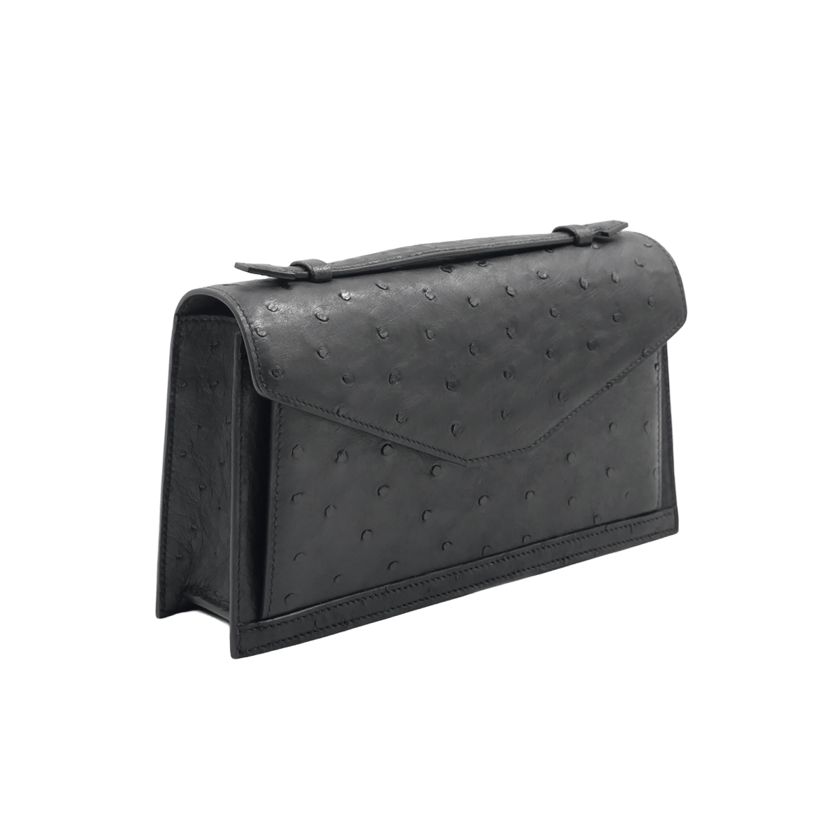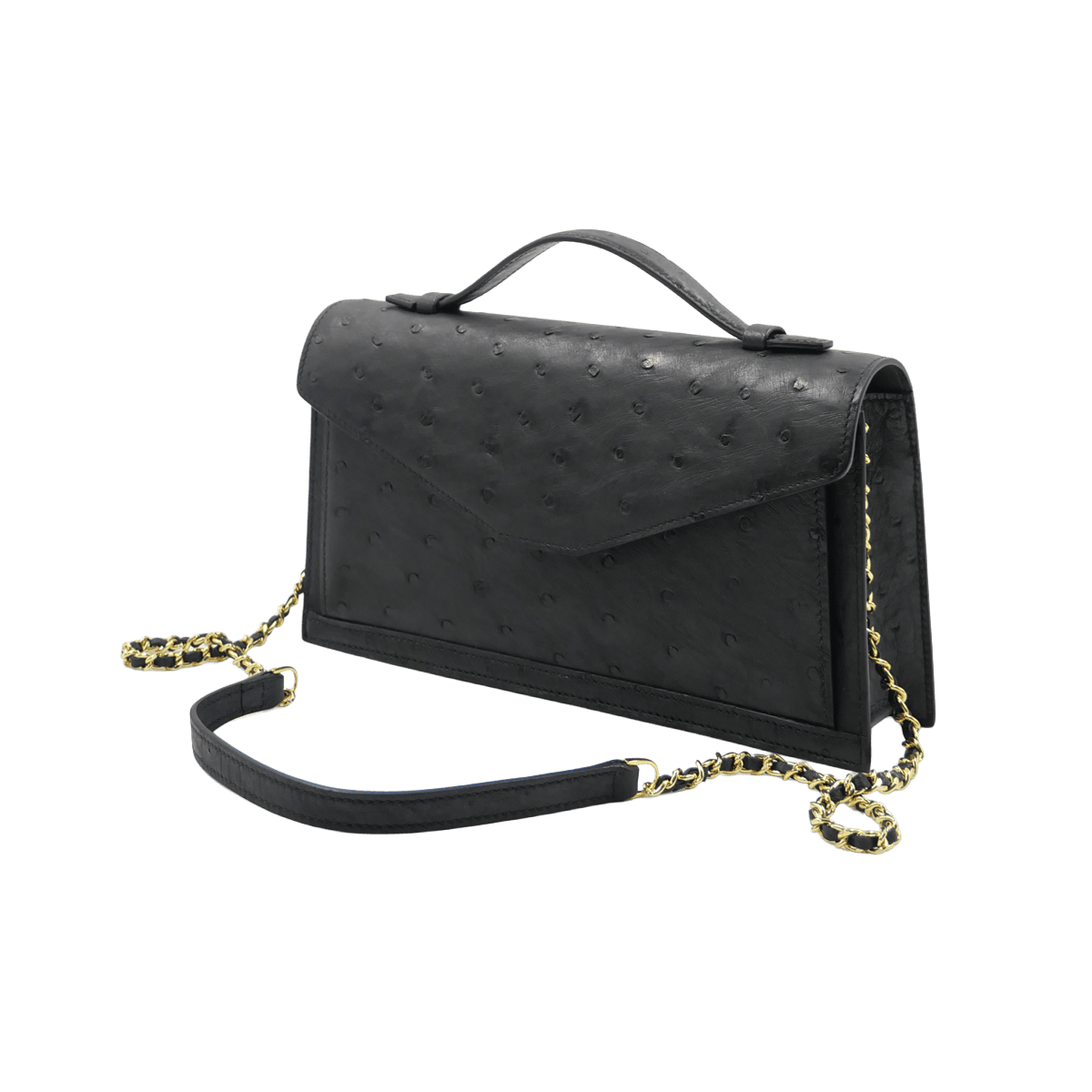 A luxury clutch bag designed by Bangkok Bootery expert craftsman who are No.1 in Thailand. Cervin with handle is a big size exotic clutch bag with chain leather strap designed by Bangkok Bootery and handcrafted from start to finish. Cervin in size 25cm is Bangkok Bootery’s best selling sling bags crafted from genuine ostrich skin available in a variety of colors. An envelope shape design that looks chic and luxury highlighted by a top handle and flap over.
