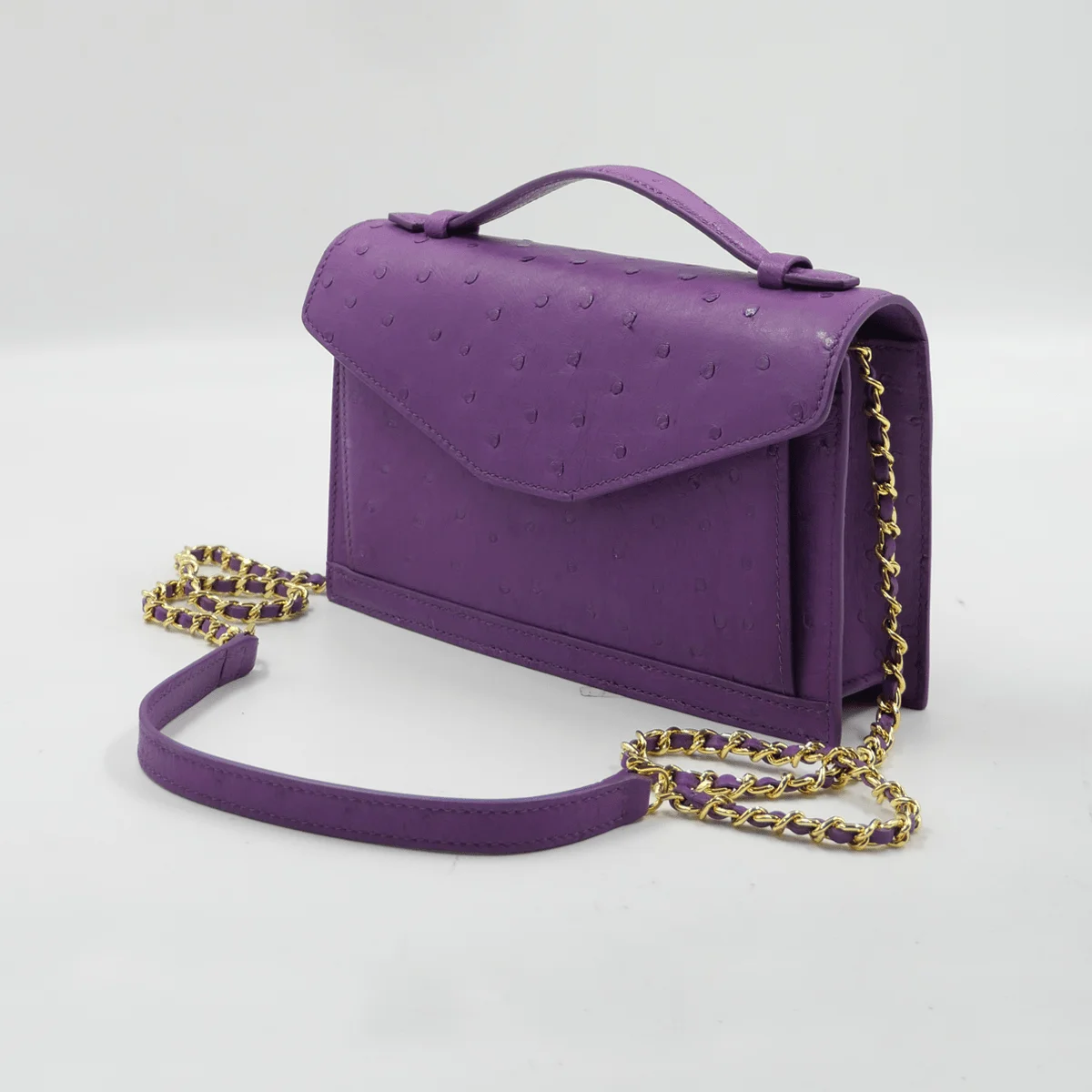A luxury clutch bag designed by Bangkok Bootery expert craftsman who are No.1 in Thailand. Cervin with handle is a medium size exotic clutch bag with chain leather strap designed by Bangkok Bootery and handcrafted from start to finish. Cervin in size 20cm is Bangkok Bootery’s best selling sling bags crafted from genuine ostrich skin available in a variety of colors. An envelope shape design that looks chic and luxury highlighted by a top handle and flap over.