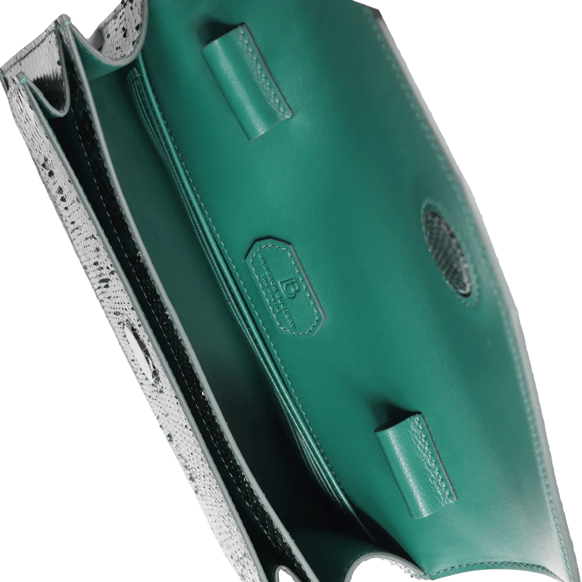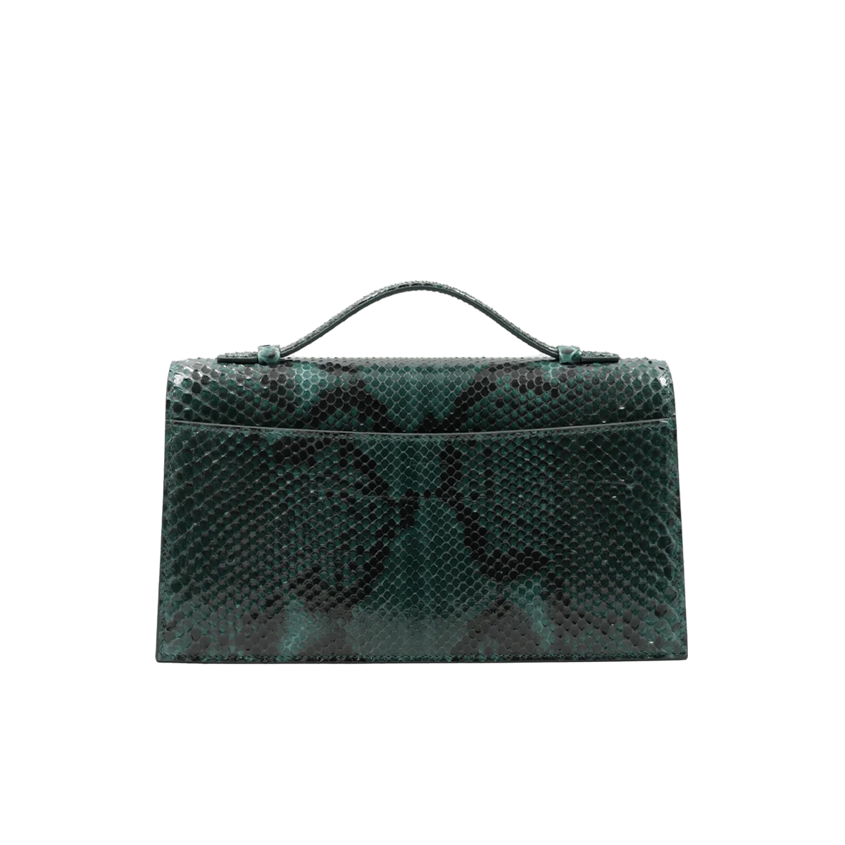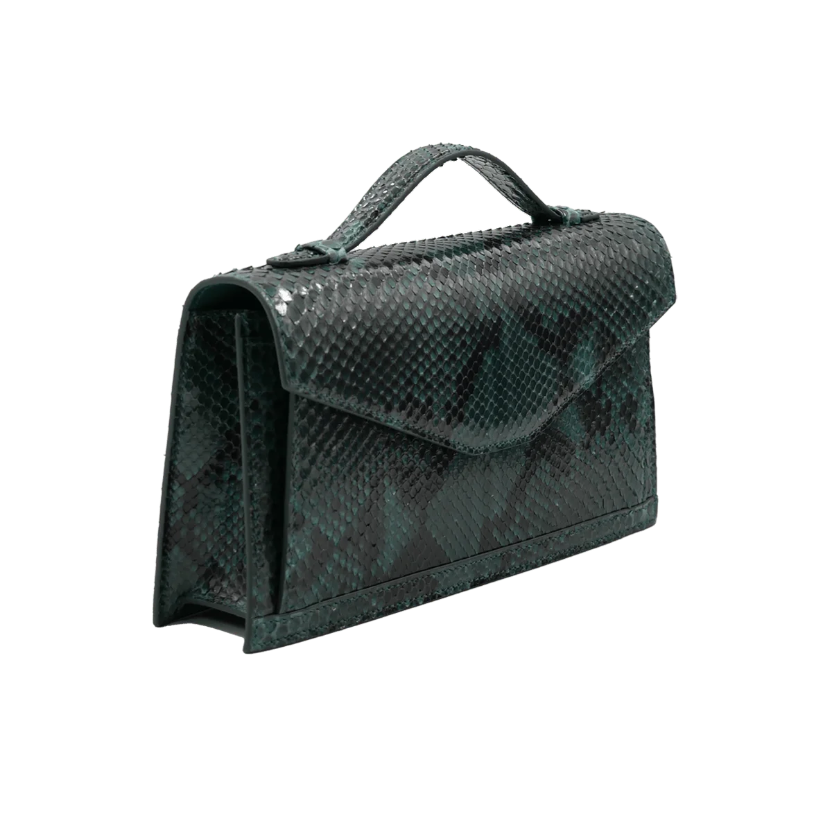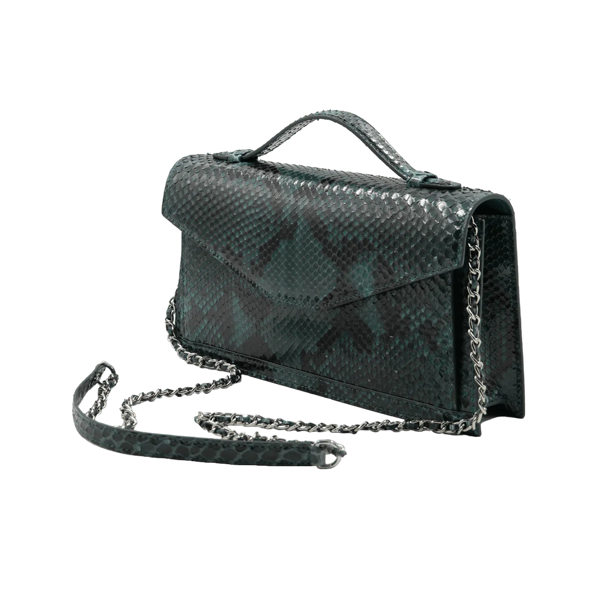 CERVIN WITH HANDEL a luxury clutch bag designed by Bangkok Bootery expert craftsman who are No.1 in Thailand. Cervin with handle is a medium big size exotic clutch bag with chain leather strap designed by Bangkok Bootery and handcrafted from start to finish. Cervin in size 25cm is Bangkok Bootery’s best selling sling bags crafted from genuine python back skin in shiny limited tone of color. An envelope shape design that looks chic and luxury highlighted by a top handle and flap over.