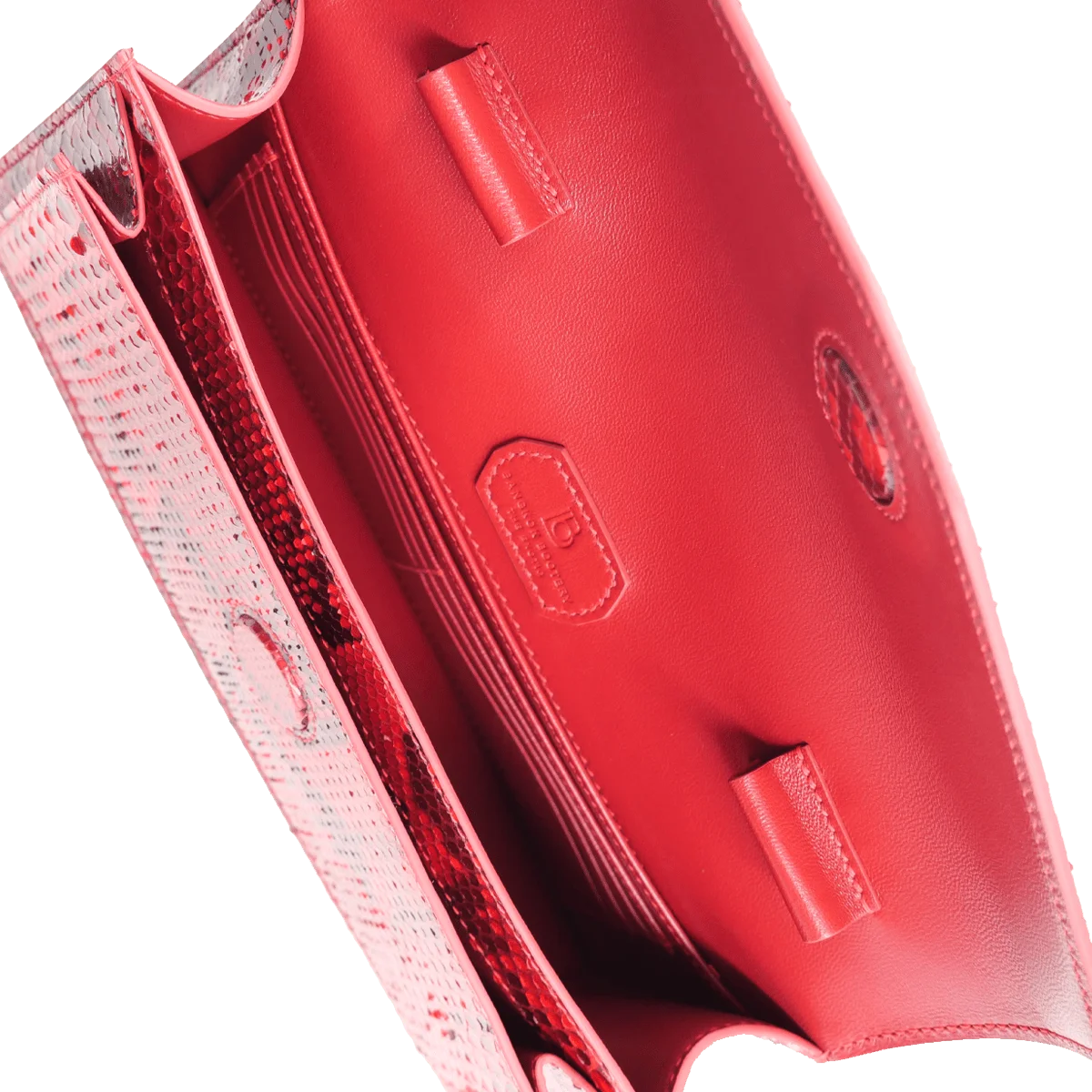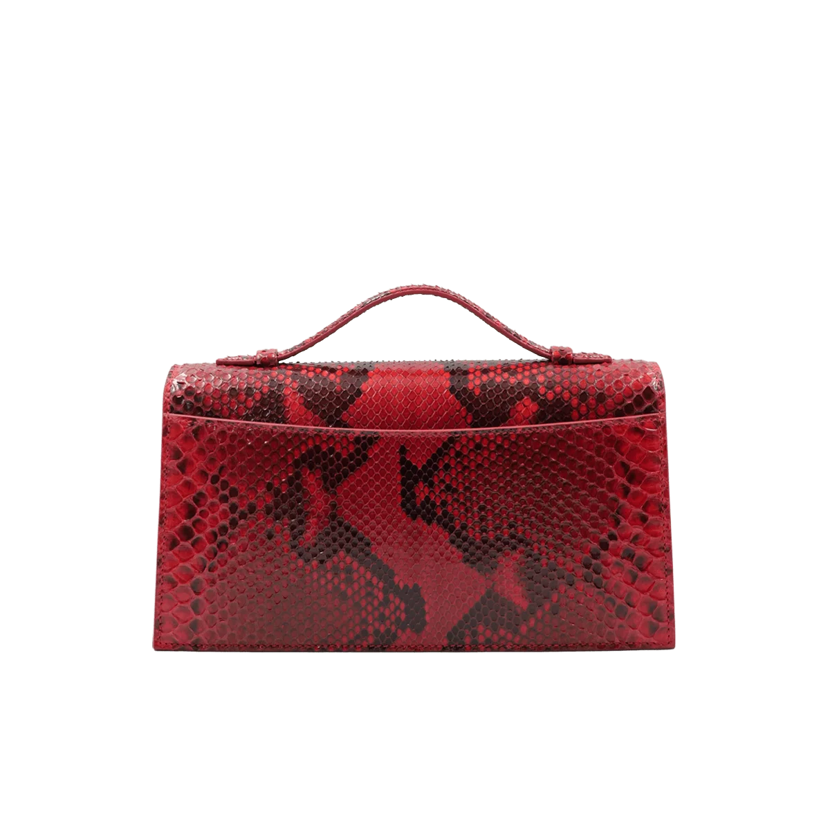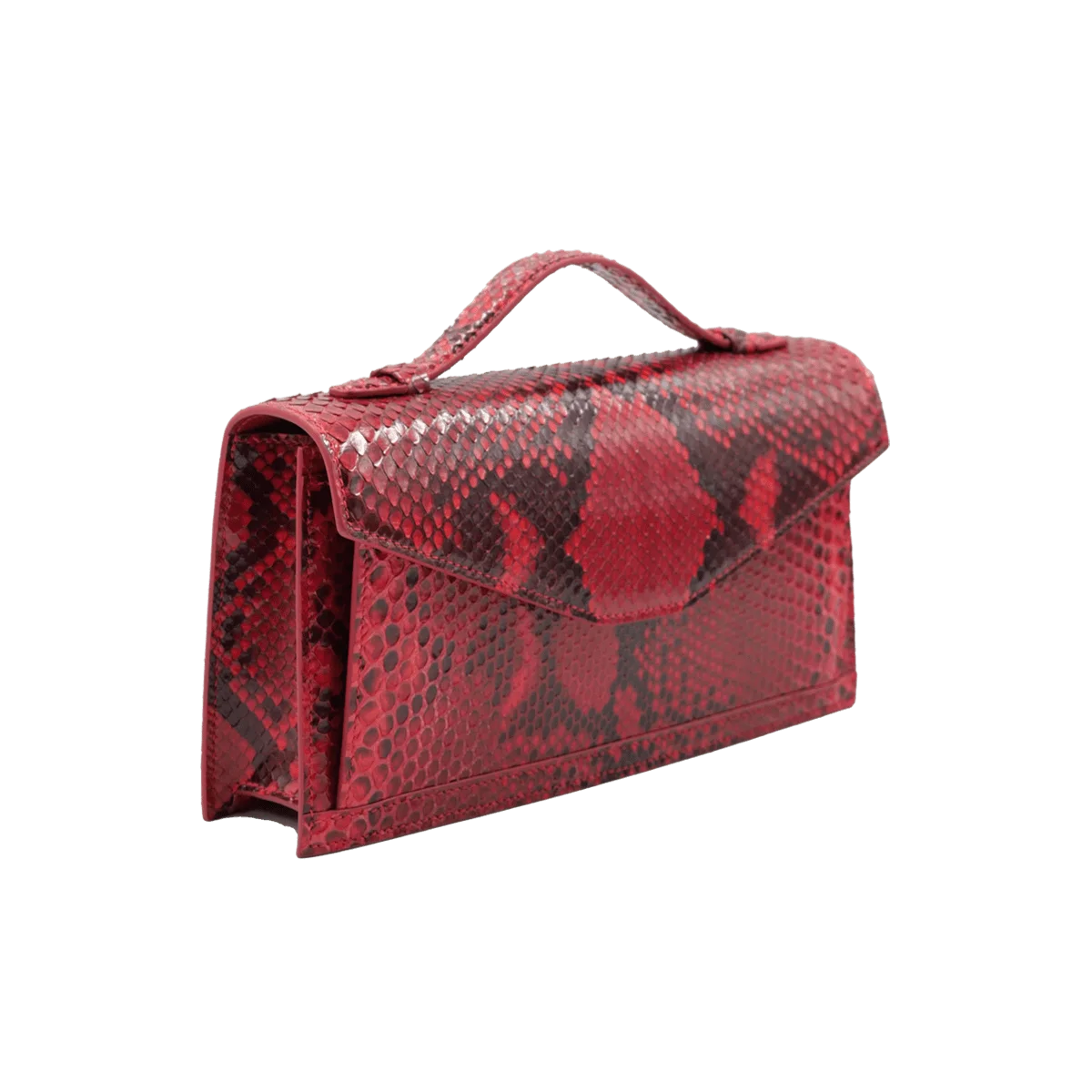 CERVIN WITH HANDEL a luxury clutch bag designed by Bangkok Bootery expert craftsman who are No.1 in Thailand. Cervin with handle is a medium big size exotic clutch bag with chain leather strap designed by Bangkok Bootery and handcrafted from start to finish. Cervin in size 25cm is Bangkok Bootery’s best selling sling bags crafted from genuine python back skin in shiny limited tone of color. An envelope shape design that looks chic and luxury highlighted by a top handle and flap over.