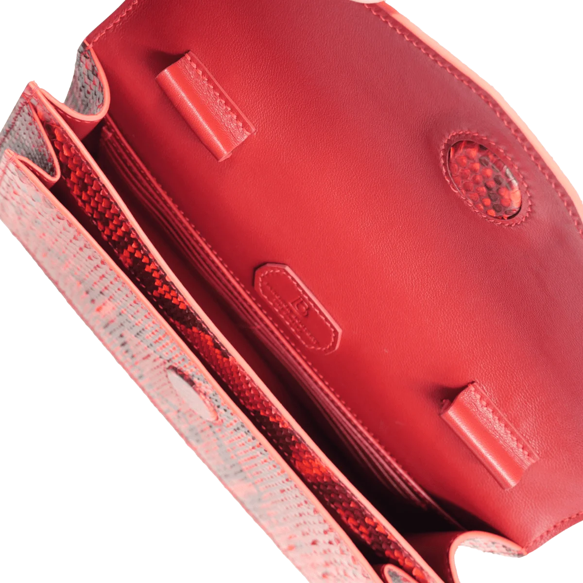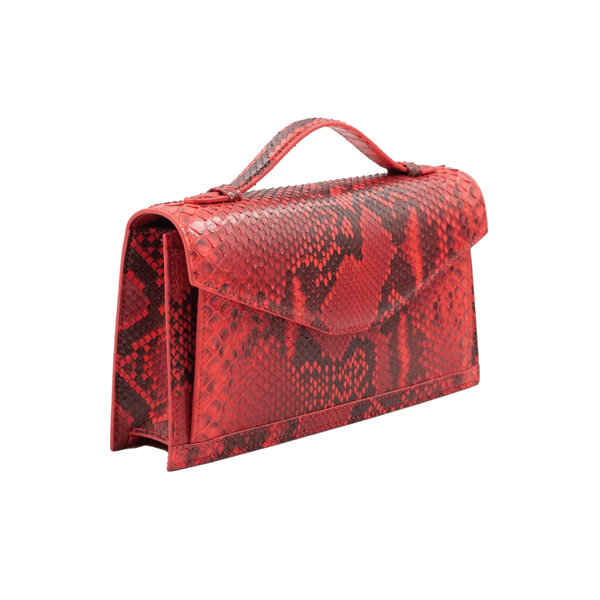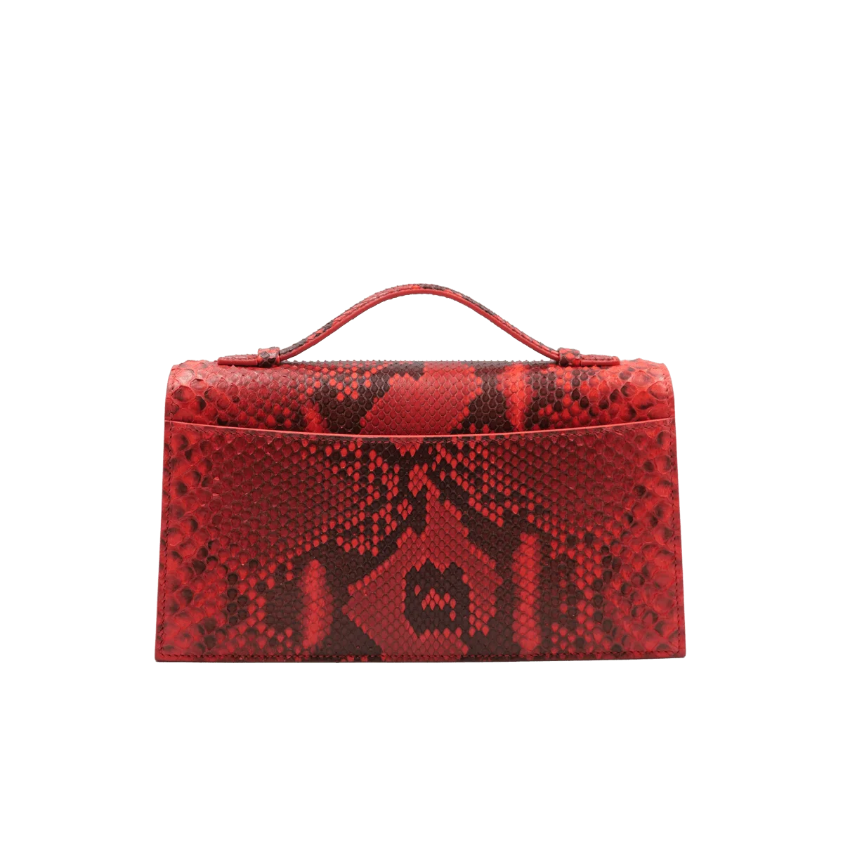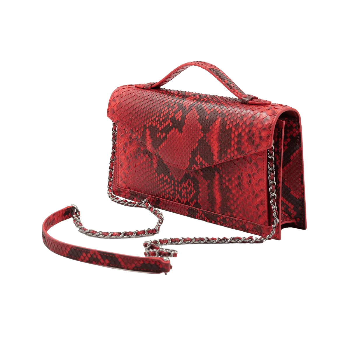 CERVIN WITH HANDEL a luxury clutch bag designed by Bangkok Bootery expert craftsman who are No.1 in Thailand. Cervin with handle is a medium big size exotic clutch bag with chain leather strap designed by Bangkok Bootery and handcrafted from start to finish. Cervin in size 25cm is Bangkok Bootery’s best selling sling bags crafted from genuine python back skin in matte and shiny limited tone of colors. An envelope shape design that looks chic and luxury highlighted by a top handle and flap over.