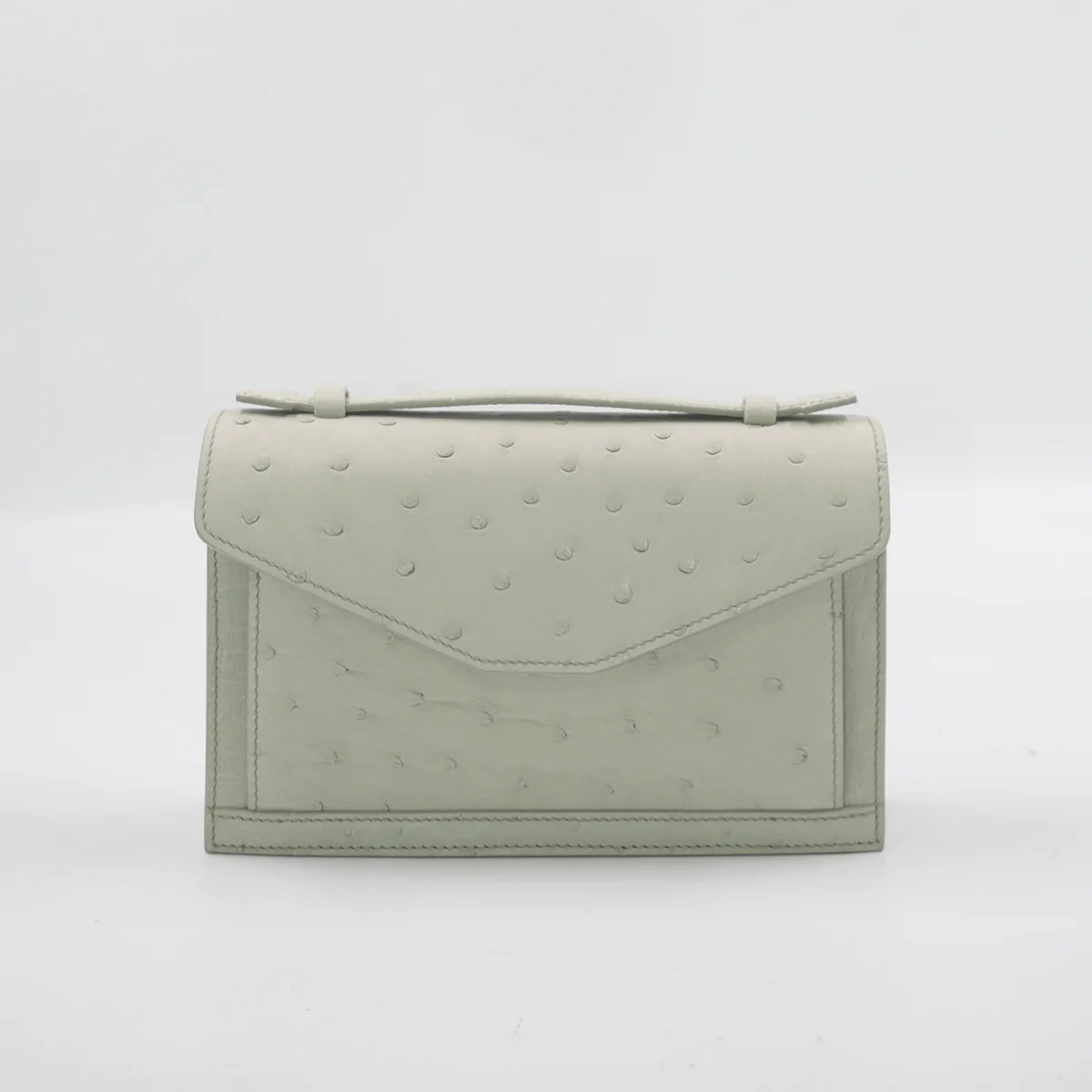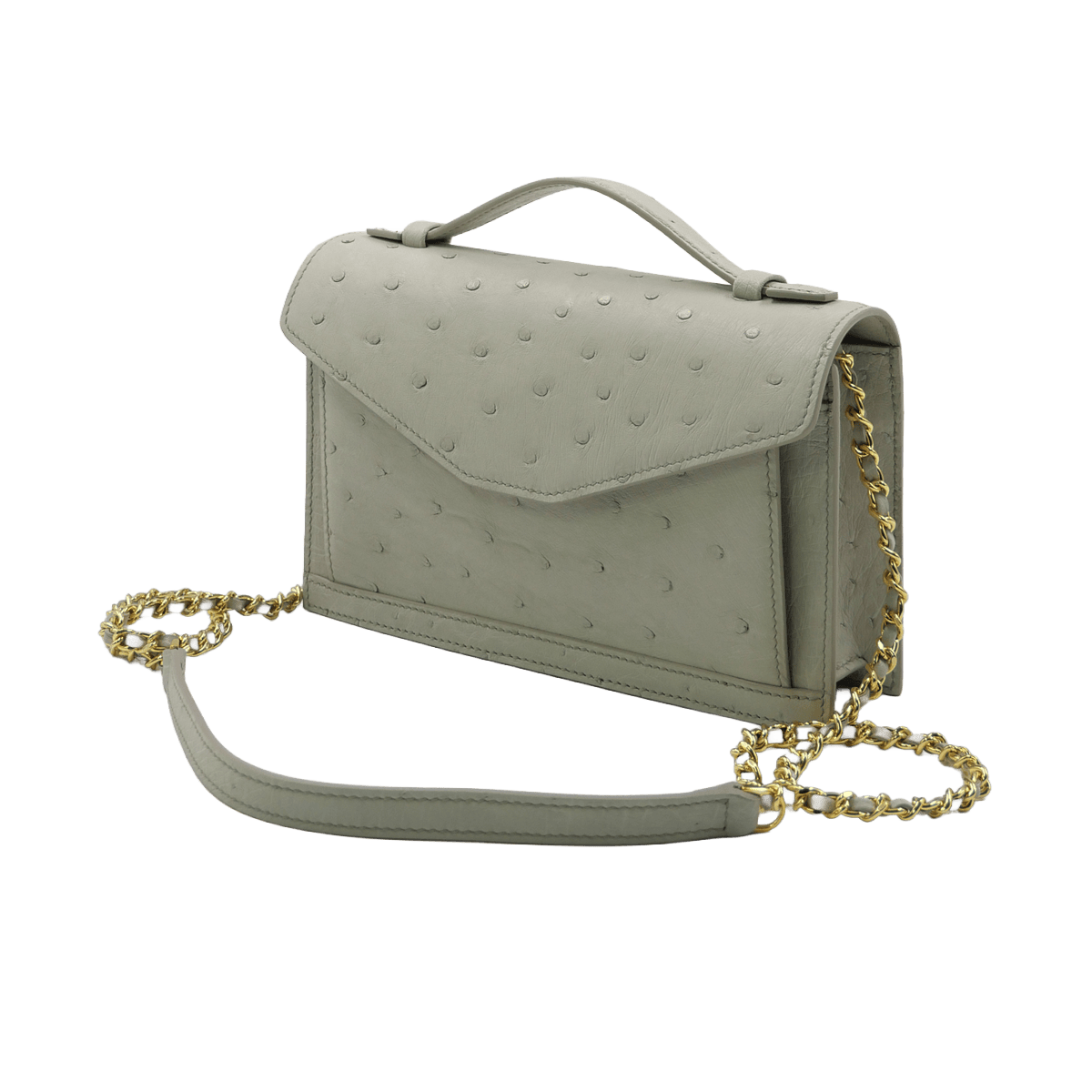 A luxury clutch bag designed by Bangkok Bootery expert craftsman who are No.1 in Thailand. Cervin with handle is a medium size exotic clutch bag with chain leather strap designed by Bangkok Bootery and handcrafted from start to finish. Cervin in size 20cm is Bangkok Bootery’s best selling sling bags crafted from genuine ostrich skin available in a variety of colors. An envelope shape design that looks chic and luxury highlighted by a top handle and flap over.