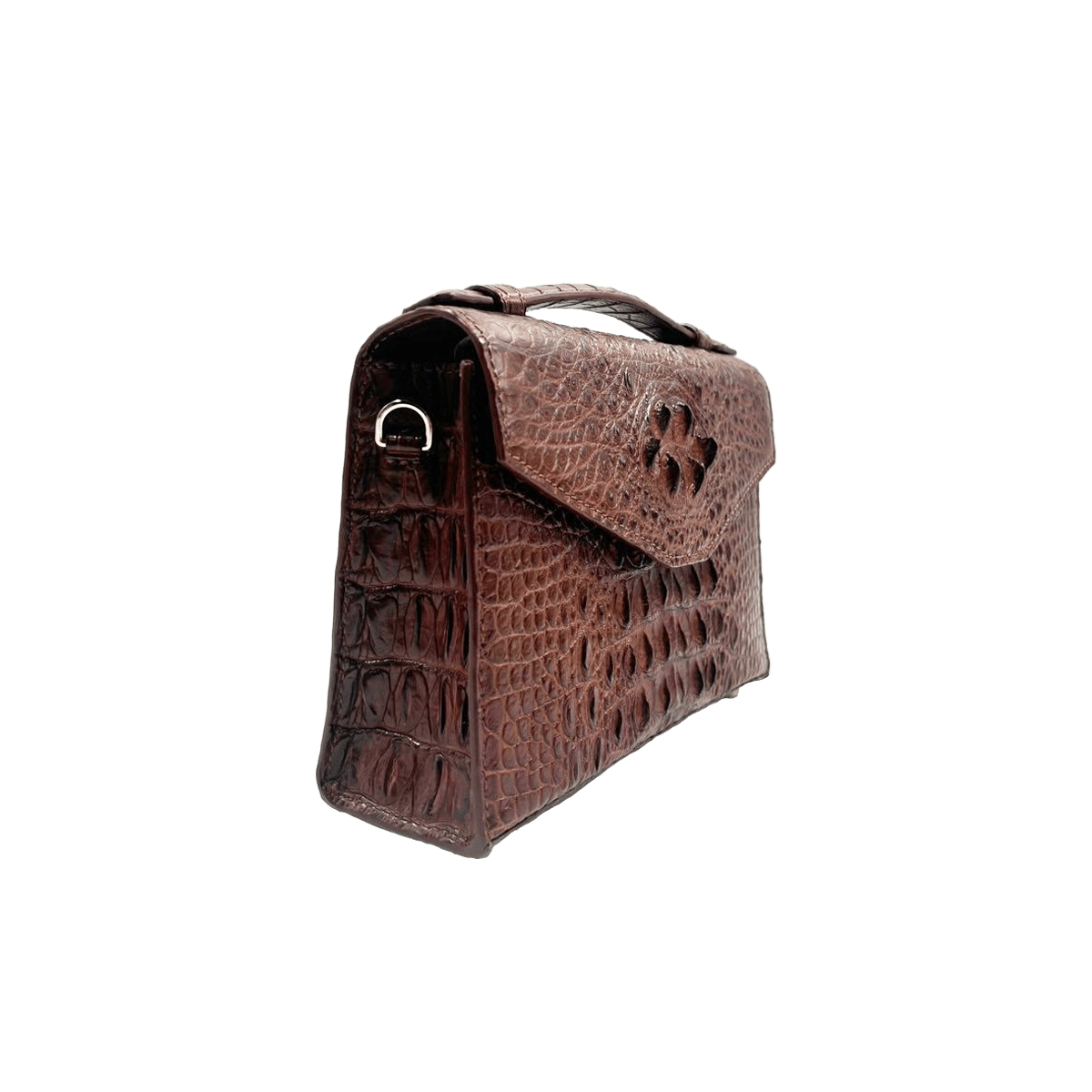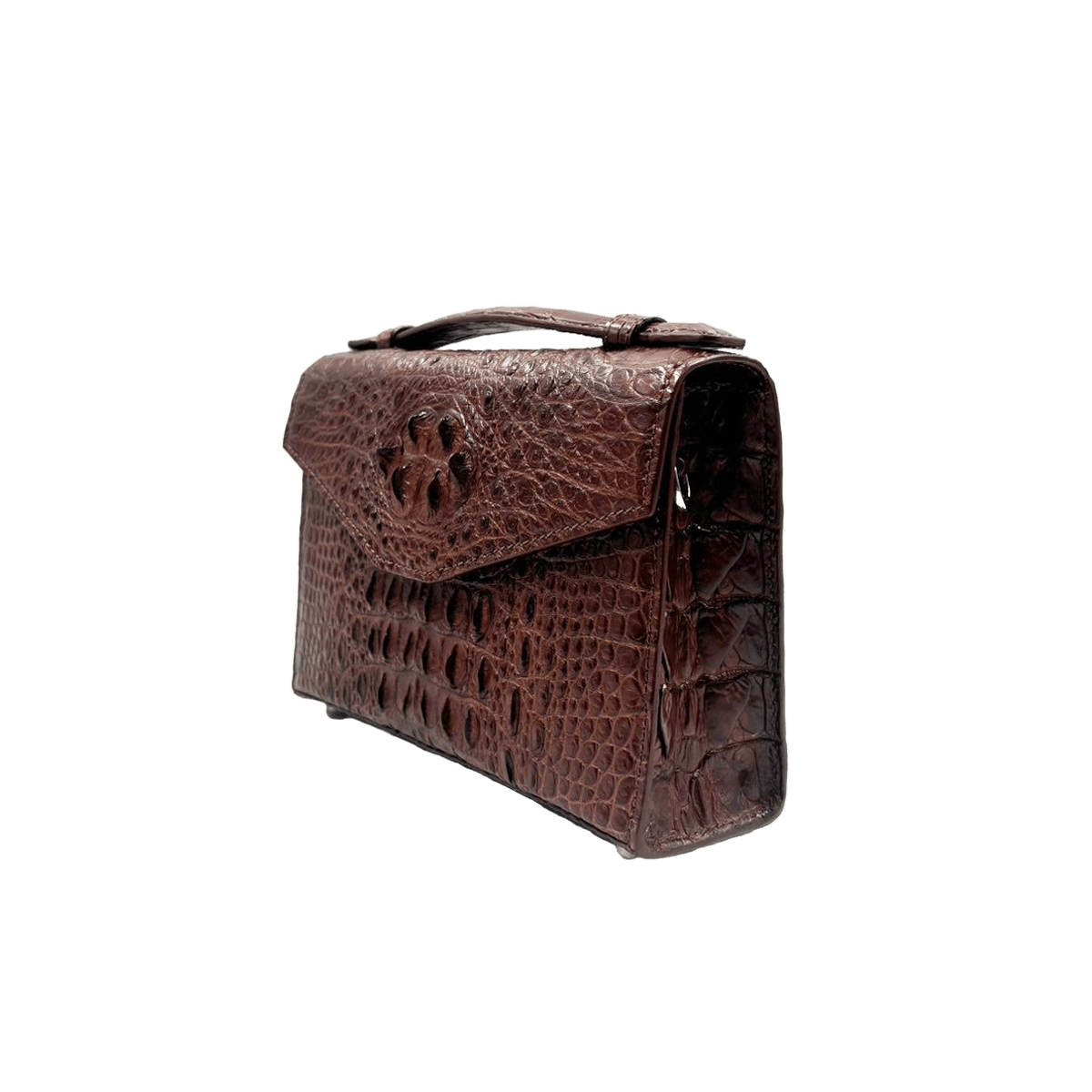 A formal exotic handbag designed by Bangkok Bootery expert craftsman who are No.1 in Thailand. Diana is a medium size handbag with top handle handcrafted from start to finish. Diana size 22cm in length is one of Bangkok Bootery’s formal women top handle bags crafted from quality crocodile hornback skin, available in many colors online and offline. It is luxury and classy and only grade A real crocodile hornback skin will be used to produce it and can be one of expensive bags in your collection. Rectangular shape with envelop flap top, large top handle, chain & leather strap and gold or silver metal accessories are main design features of Diana handbag. It has three inner compartments storage, one main center, a large zipper pocket and a large pouch that is functional for necessary items for a night party such as scarf, cell-phone, card, lipstick, sunglass and car key and secured and locked by a magnet button fastener. Easy to carry both with top handle and with the chain removable strap on your shoulder. Match it with your luxury dress for special occasions.