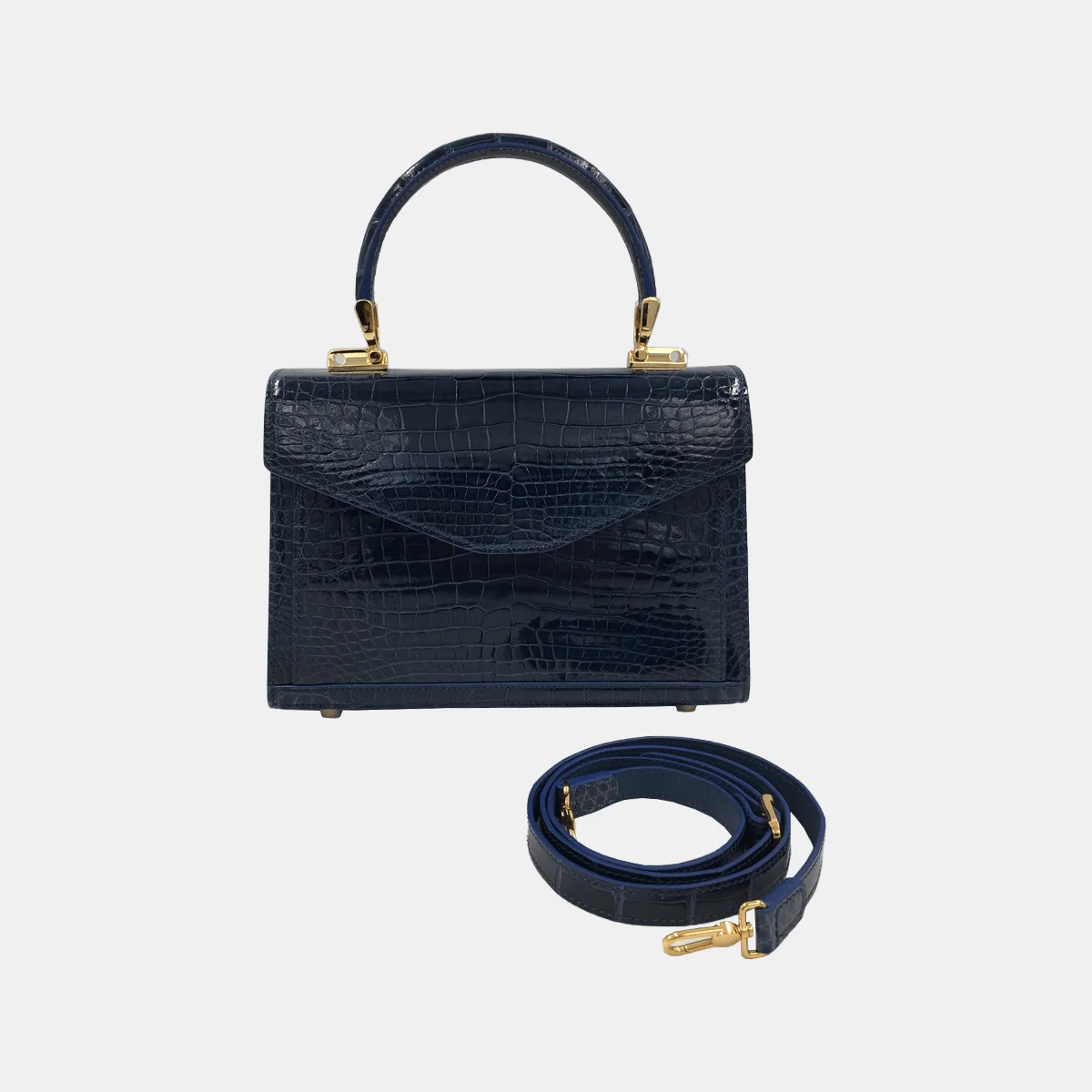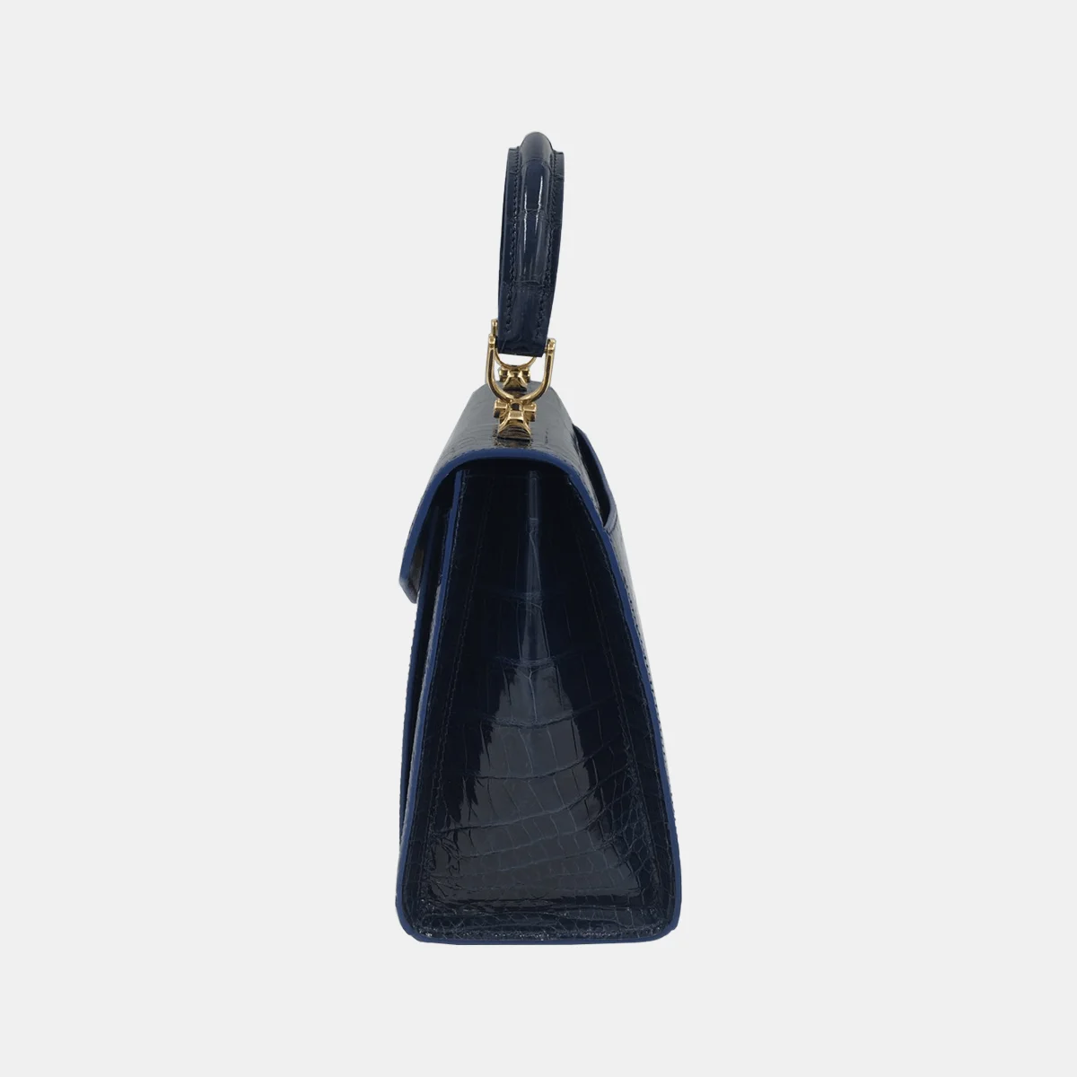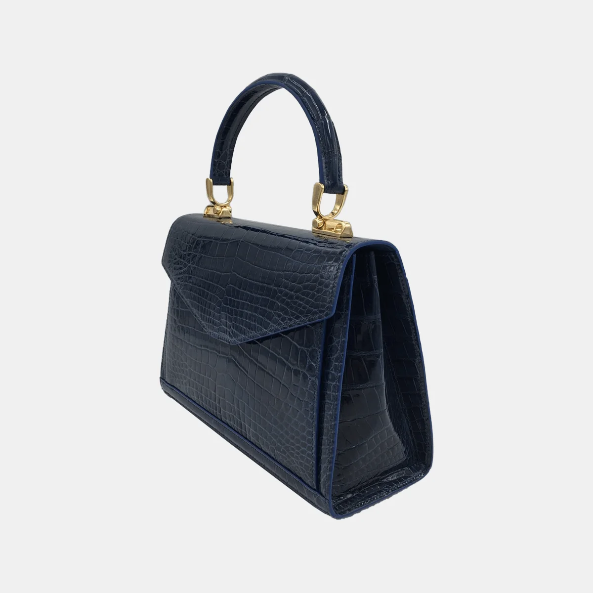 A classy exotic handbag designed by Bangkok Bootery expert craftsman who are No.1 in Thailand. Emma is a big medium size handbag with top handle handcrafted from start to finish. Emma has two sizes #21 and #25 in width and is one of Bangkok Bootery’s formal women bags crafted from quality crocodile belly skin in shiny tone of colors. It is luxury and durable as the top grade crocodile skin from belly part has been used to produce it and can be an expensive 100% leather handmade bag in your bag collection.