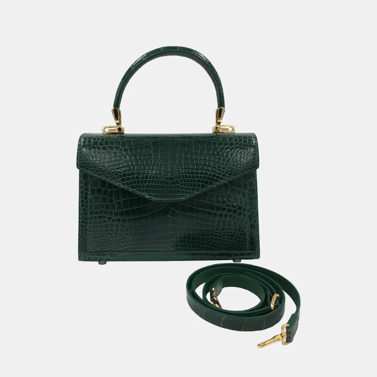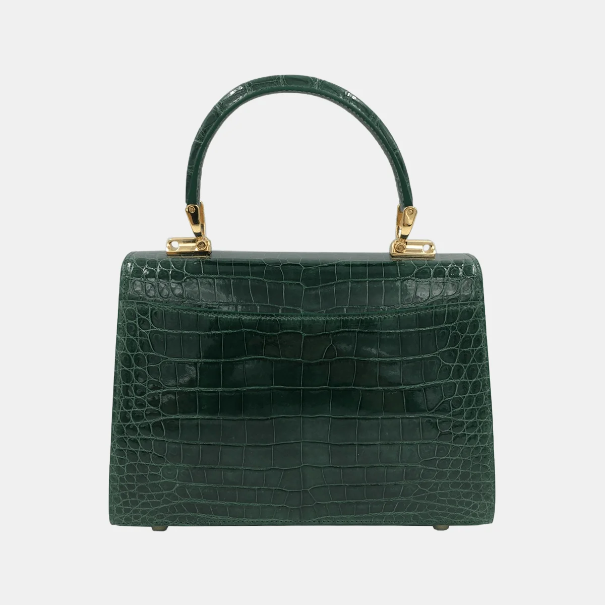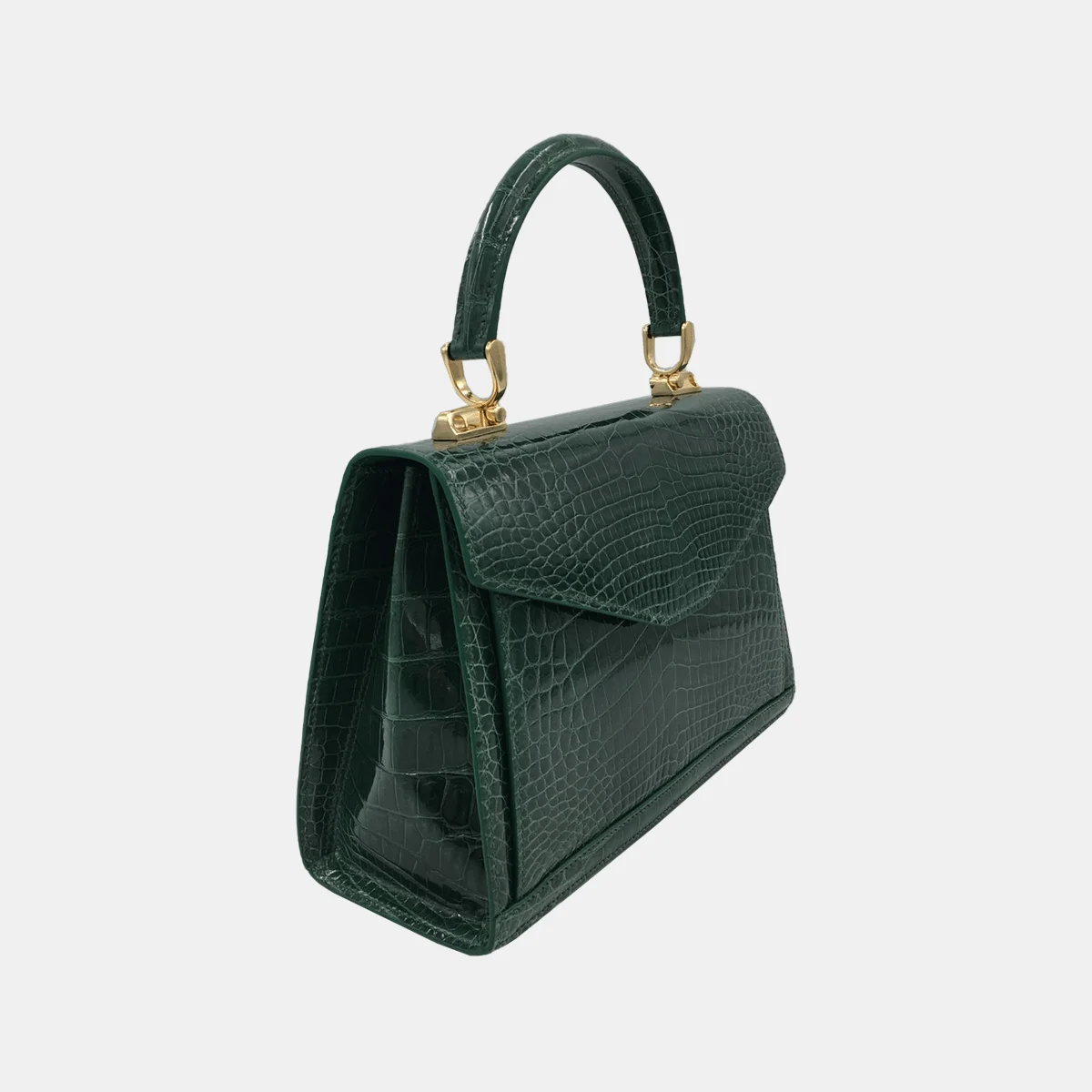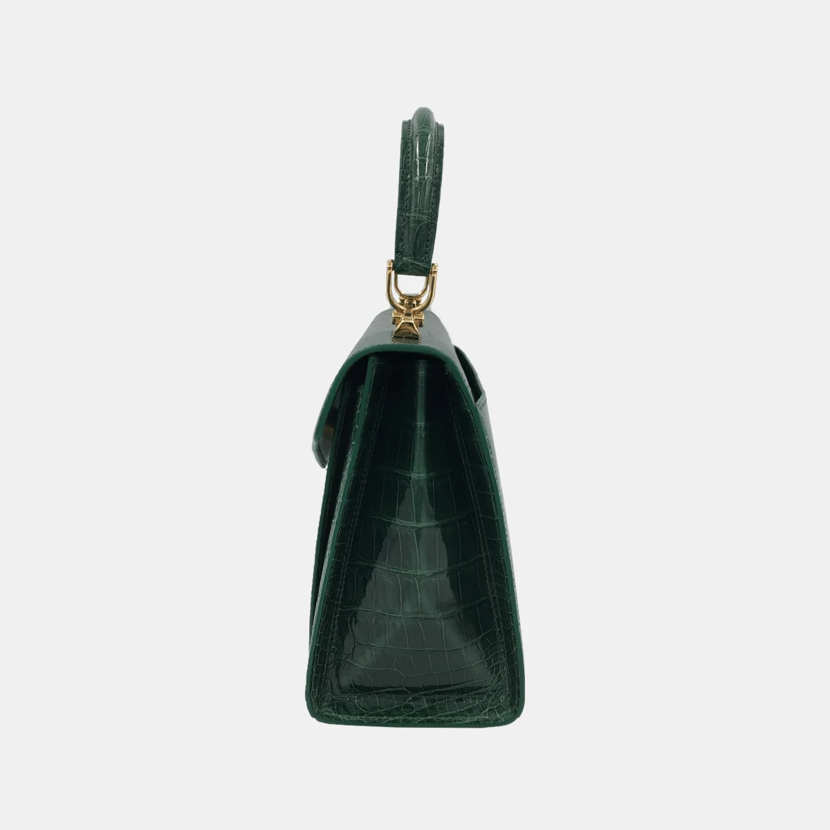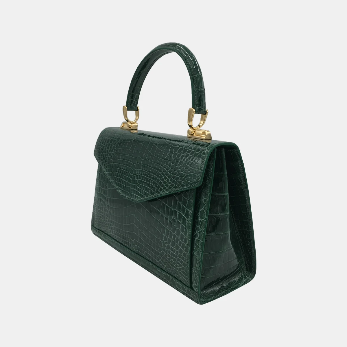 A classy exotic handbag designed by Bangkok Bootery expert craftsman who are No.1 in Thailand. Emma is a big medium size handbag with top handle handcrafted from start to finish. Emma has two sizes #21 and #25 in width and is one of Bangkok Bootery’s formal women bags crafted from quality crocodile belly skin in shiny tone of colors. It is luxury and durable as the top grade crocodile skin from belly part has been used to produce it and can be an expensive 100% leather handmade bag in your bag collection.