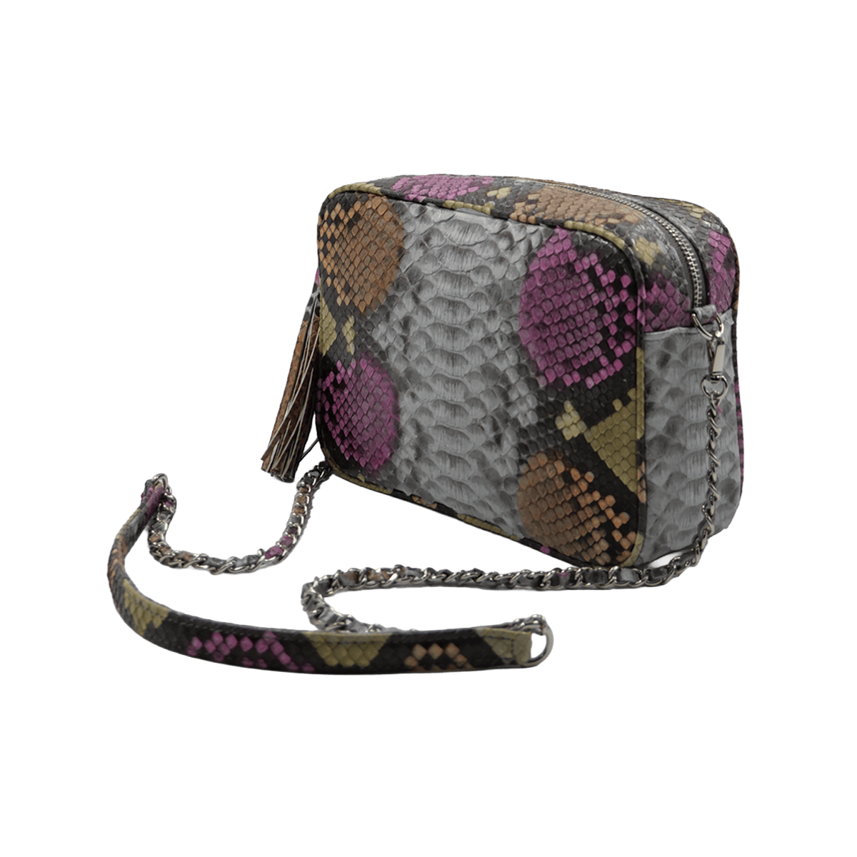Fairy is one of Bangkok Bootery minimal sling bags that is simple in design and crafted by Thai experts. The genuine python snake belly leather is used for making this beautiful hand-made snake leather small size bag and the use of python belly flakes at the center of this minimal design has made it so wanted. The collection of matte and shiny tone of snake skin in a variety of available colors gives you a color selection to fulfill your preferences.