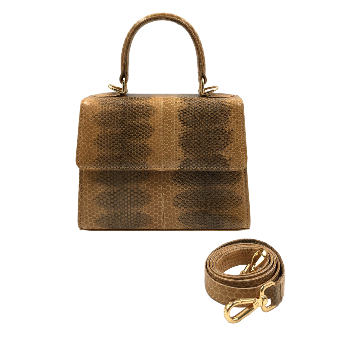 A masterpiece handbag designed by Bangkok Bootery expert craftsman who are No.1 in Thailand. This “Goldmas” is a medium small size bag with top handle designed by Bangkok Bootery and handcrafted from start to finish. “Goldmas” in size 19cm is one of Bangkok Bootery best seller bags crafted from quality seasnake skin in a wide range of colors.