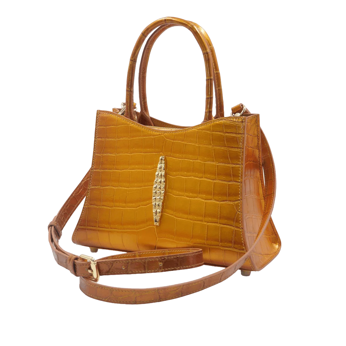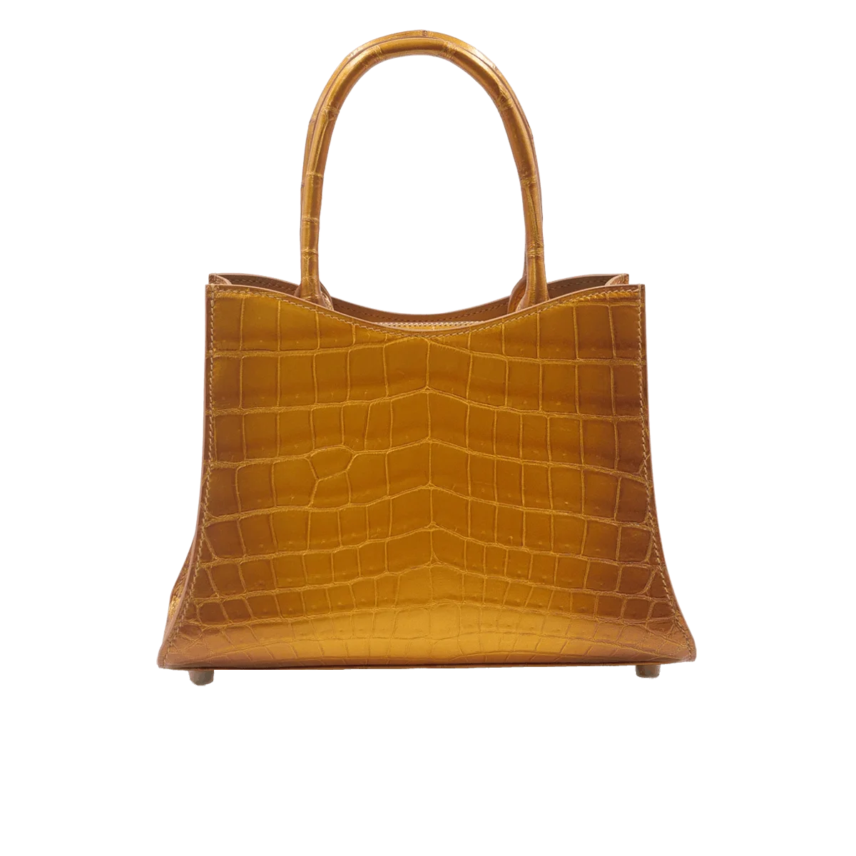 A luxury handbag “Isabella” with a long and firm round handle designed by Bangkok Bootery expert craftsman who are No.1 in Thailand. Isabella is a big size exotic handbag with the same leather strap designed by Bangkok Bootery and handcrafted from start to finish. Isabella in size 24 cm is Bangkok Bootery’s new collection handbag crafted from genuine crocodile belly skin in shiny and matte tone of colors. An amazing shape design that looks classy and luxury highlighted by a jewelry-like diamond ornament, a round firm handle and a top zip.