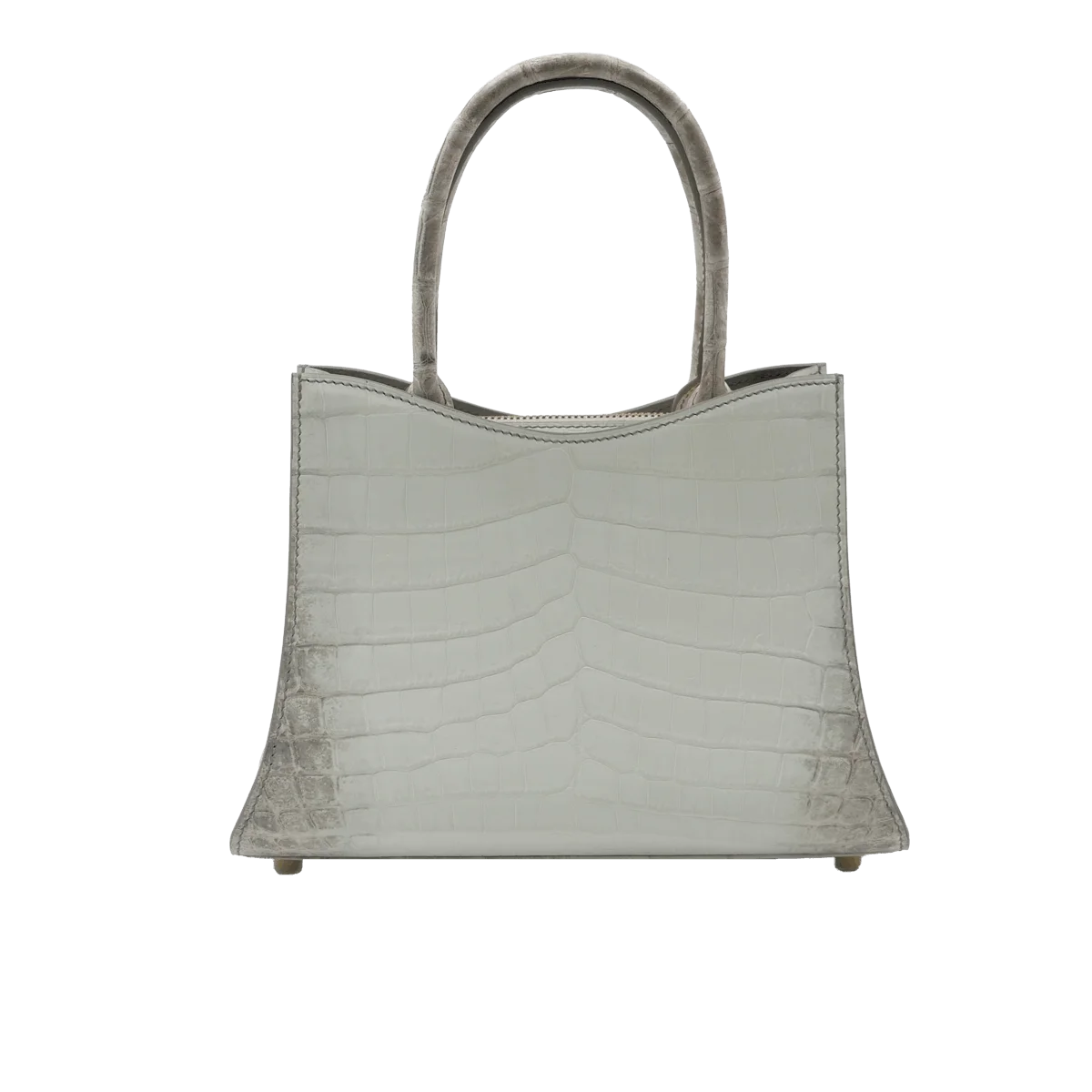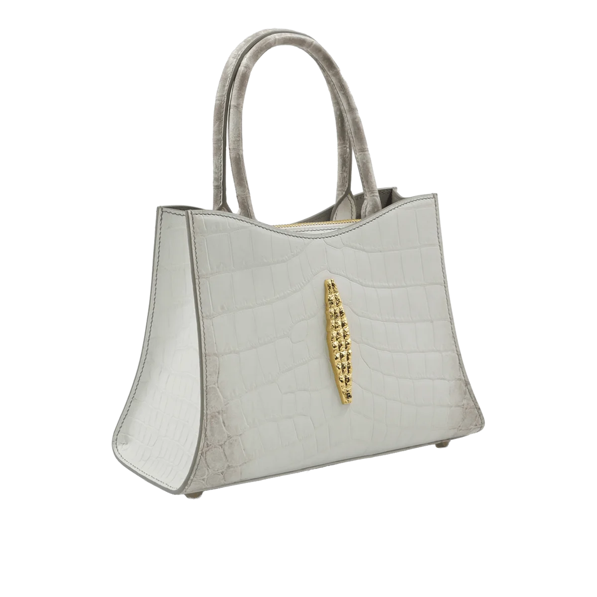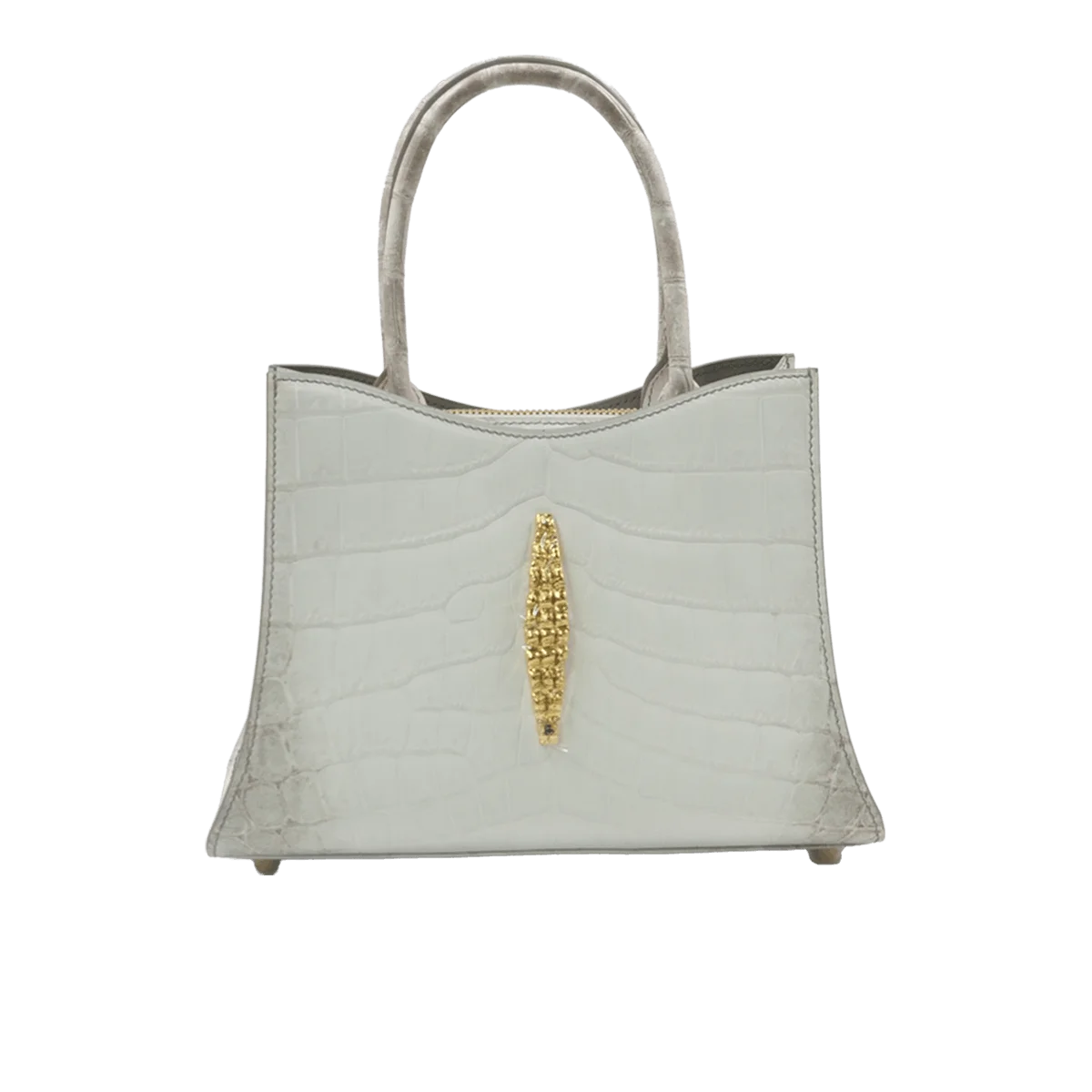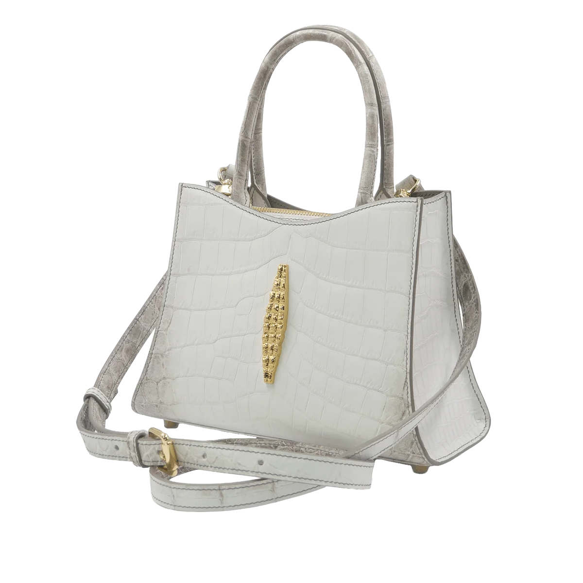 A luxury handbag “Isabella” with a long and firm round handle designed by Bangkok Bootery expert craftsman who are No.1 in Thailand. Isabella is a big size exotic handbag with the same leather strap designed by Bangkok Bootery and handcrafted from start to finish. Isabella in size 24 cm is Bangkok Bootery’s new collection handbag crafted from genuine crocodile belly skin in shiny and matte tone of colors. An amazing shape design that looks classy and luxury highlighted by a jewelry-like diamond ornament, a round firm handle and a top zip.