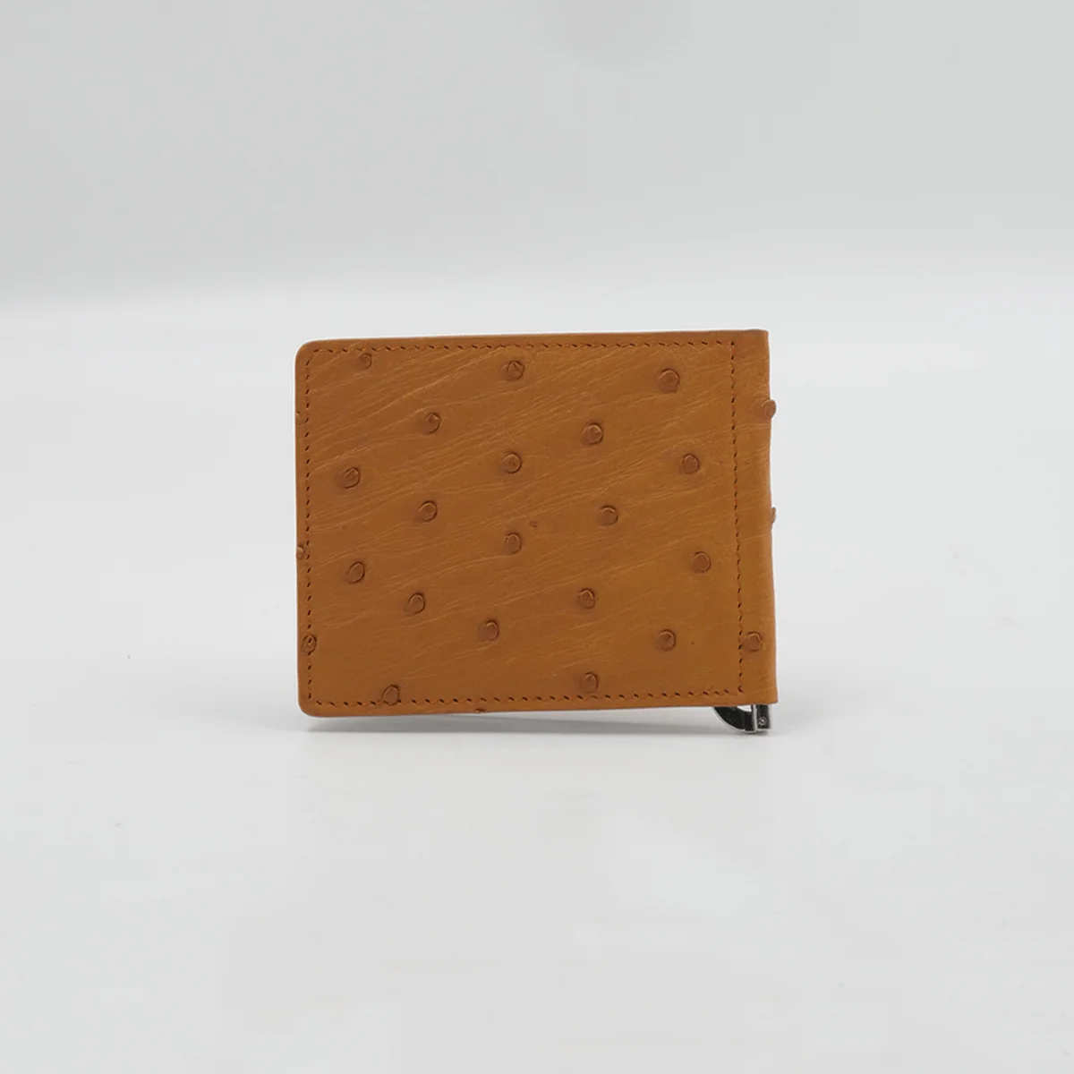 Money clip made from quality ostrich skin and accessories made by Bangkok Bootery from genuine exotic leathers such as ostrich money holder, crocodile card bank notecase, keychain, python wallet, stingray iPhone case, crocodile belt, python hat, crocodile watch strap, exotic bag shoulder strap for sale here in website.