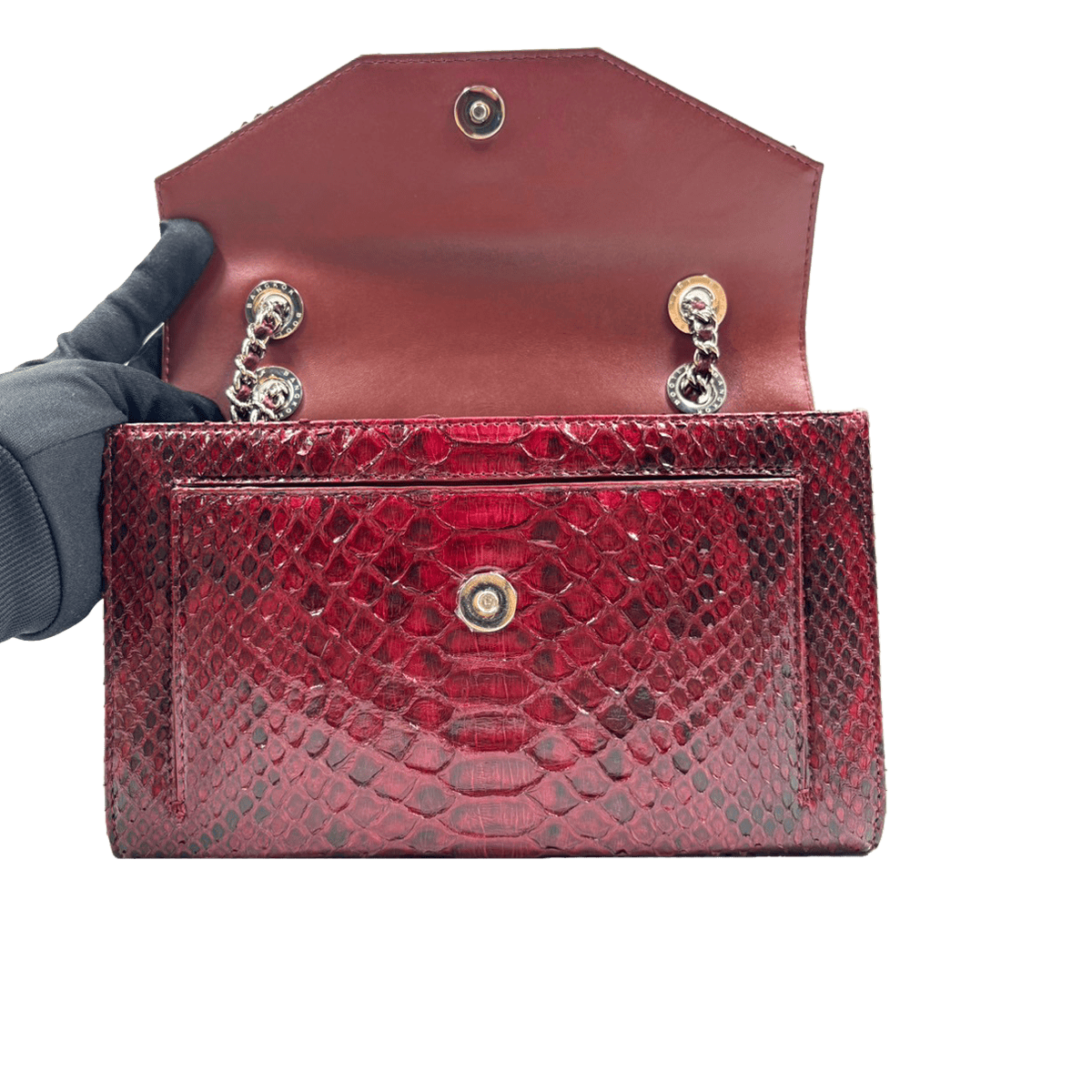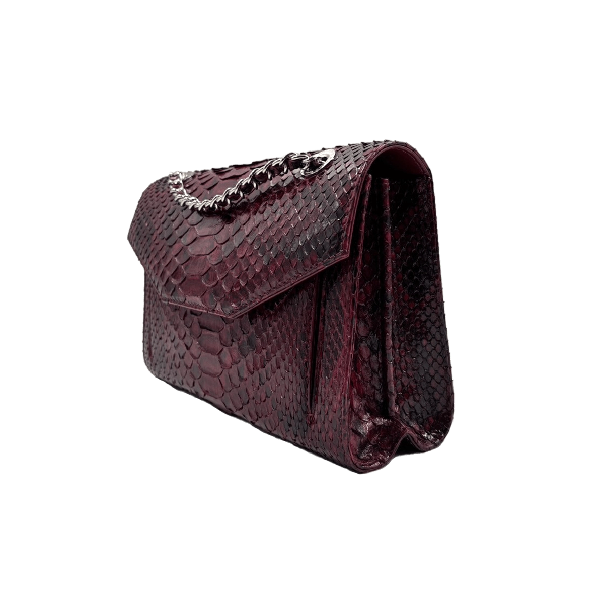 Sarah is one of Bangkok Bootery new collection that is elegant in design and crafted by Thai experts. The genuine python snake belly leather is used for making this beautiful hand-made exotic leather medium size bag and the use of python snake belly part on the exterior of this charming design has made it unique. The collection of matte and shiny tones of python snake in a variety of available colors gives you a color selection to fulfill your preferences. It is a functional in size 25cm with a envelope style on heading and the same leather & chain strap. To carry your everyday stuff, cell-phone, and accessories, sarah sling bag is the best choice with exotic leather pattern that is astonishing. Match Sarah bag with your daily outfit and enjoy your casual.