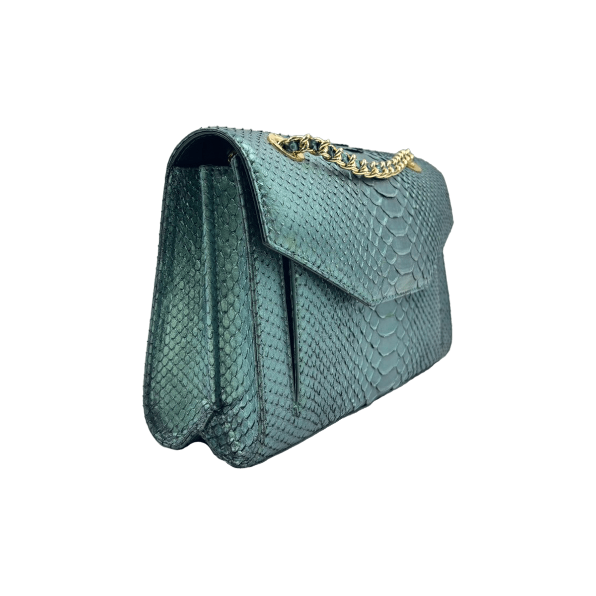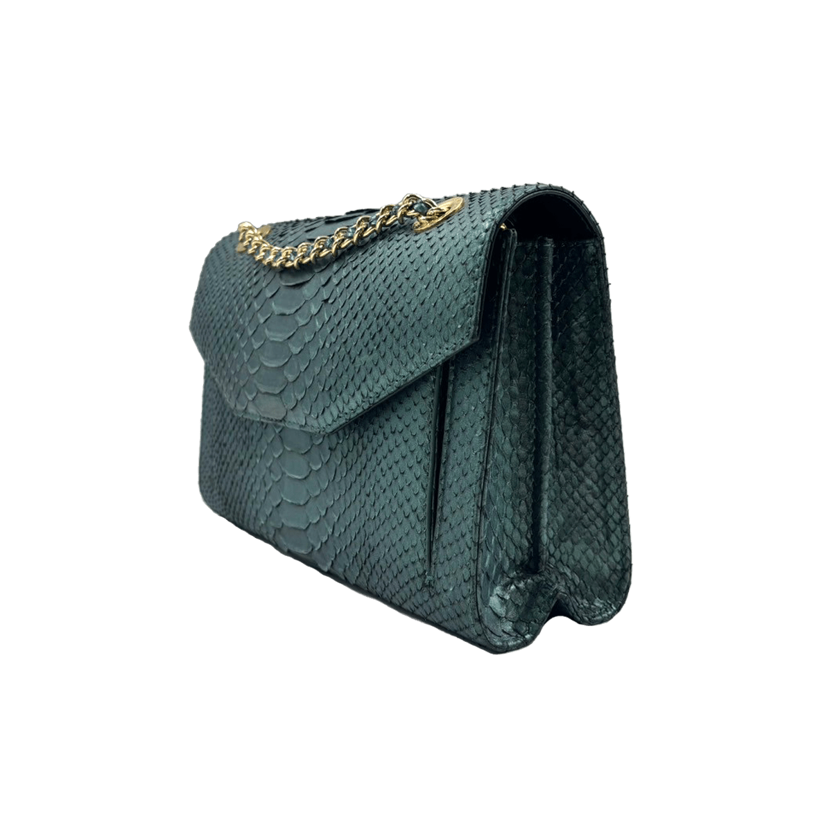 Sarah is one of Bangkok Bootery new collection that is elegant in design and crafted by Thai experts. The genuine python snake belly leather is used for making this beautiful hand-made exotic leather medium size bag and the use of python snake belly part on the exterior of this charming design has made it unique. The collection of matte and shiny tones of python snake in a variety of available colors gives you a color selection to fulfill your preferences. It is a functional in size 25cm with a envelope style on heading and the same leather & chain strap. To carry your everyday stuff, cell-phone, and accessories, sarah sling bag is the best choice with exotic leather pattern that is astonishing. Match Sarah bag with your daily outfit and enjoy your casual.