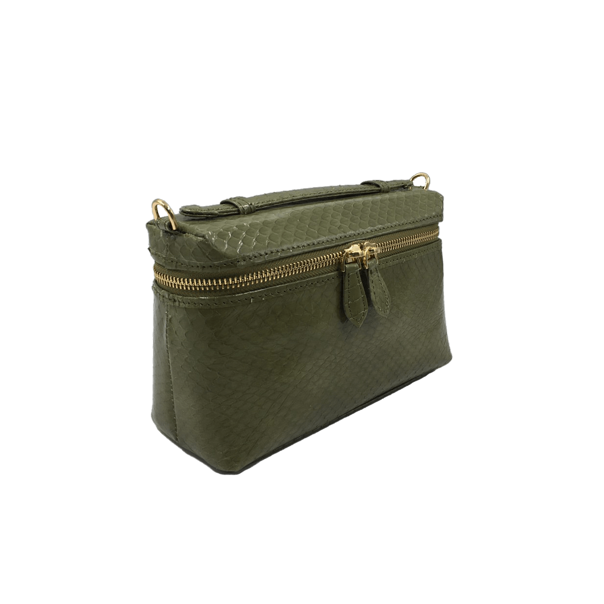 Selena is one of Bangkok Bootery best seller sling bags that is elegant in design and crafted by Thai experts. The genuine cobra snake leather is used for making this beautiful hand-made snake leather small size bag and the use of cobra flakes at the center of this charming design has made it unique. The collection of matte tone of snake skin in a variety of available colors gives you a color selection to fulfill your preferences. It is spacy in size 20cm with a long zipper on top and the same leather strap. To carry your everyday stuff, cell-phone, and accessories, Selena is the best choice with exotic leather pattern that is astonishing. Match Selena with your daily outfit and enjoy your casual.