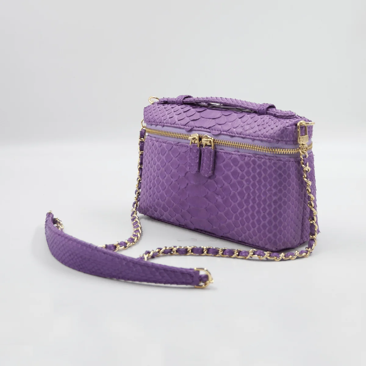 Selena is one of Bangkok Bootery best seller sling bags that is elegant in design and crafted by Thai experts. The genuine python snake belly leather is used for making this beautiful hand-made snake leather small size bag and the use of python belly flakes at the center of this charming design has made it unique. The collection of matte tone of snake skin in a variety of available colors gives you a color selection to fulfill your preferences.