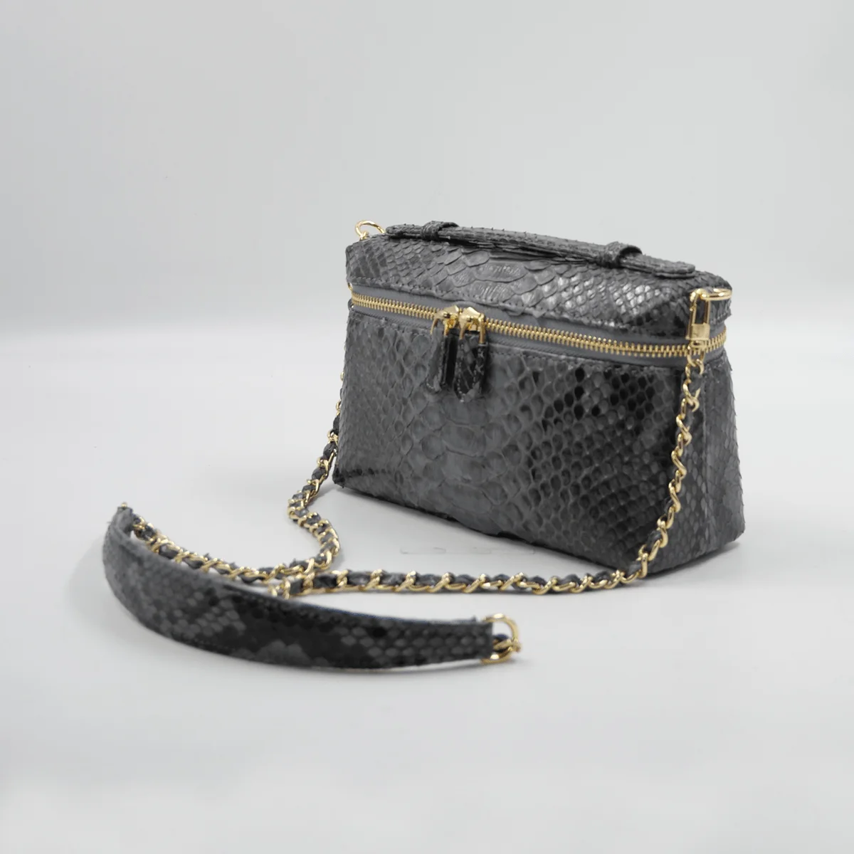 Selena is one of Bangkok Bootery best seller sling bags that is elegant in design and crafted by Thai experts. The genuine python snake belly leather is used for making this beautiful hand-made snake leather small size bag and the use of python belly flakes at the center of this charming design has made it unique. The collection of matte tone of snake skin in a variety of available colors gives you a color selection to fulfill your preferences.