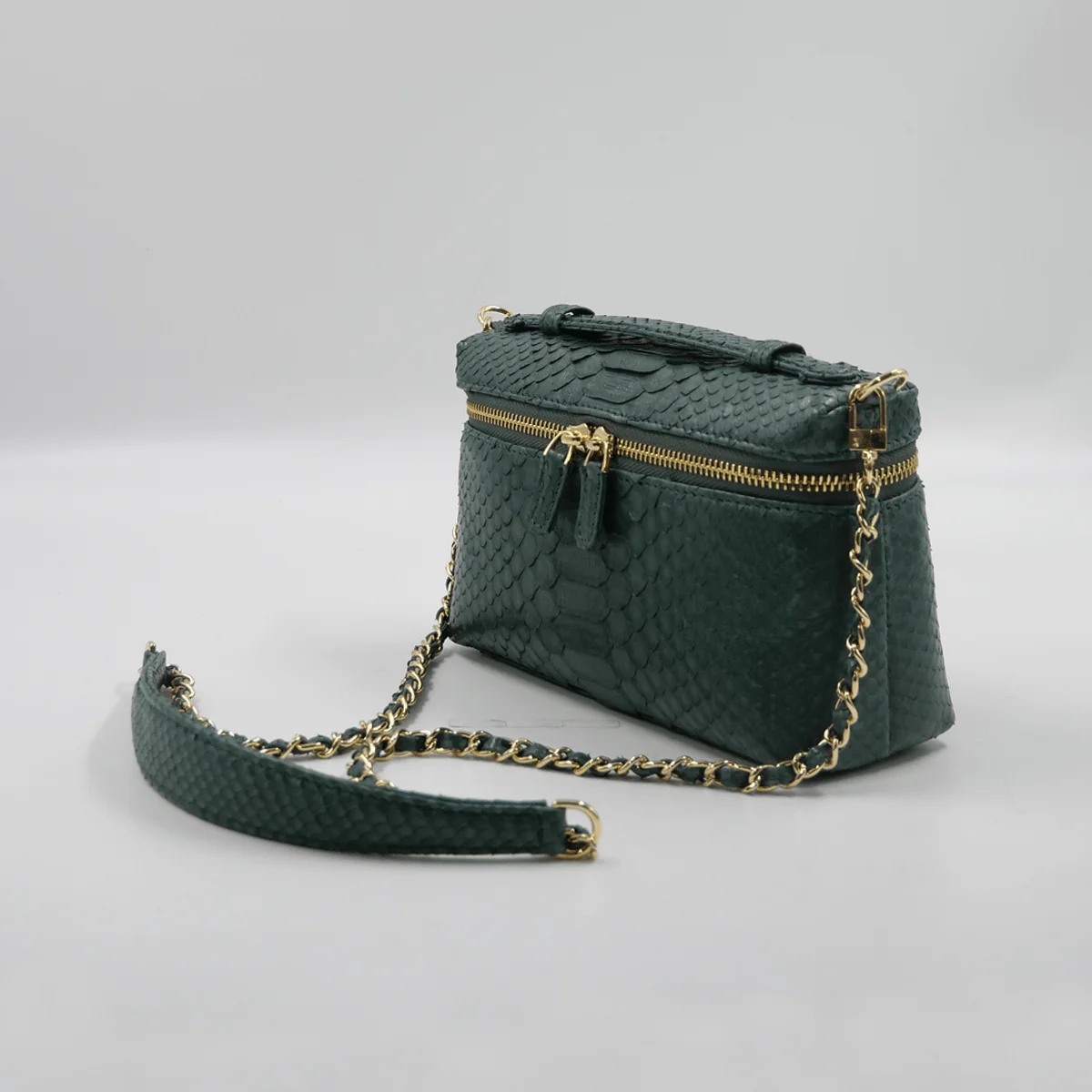 Selena is one of Bangkok Bootery best seller sling bags that is elegant in design and crafted by Thai experts. The genuine python snake belly leather is used for making this beautiful hand-made snake leather small size bag and the use of python belly flakes at the center of this charming design has made it unique. The collection of matte tone of snake skin in a variety of available colors gives you a color selection to fulfill your preferences.