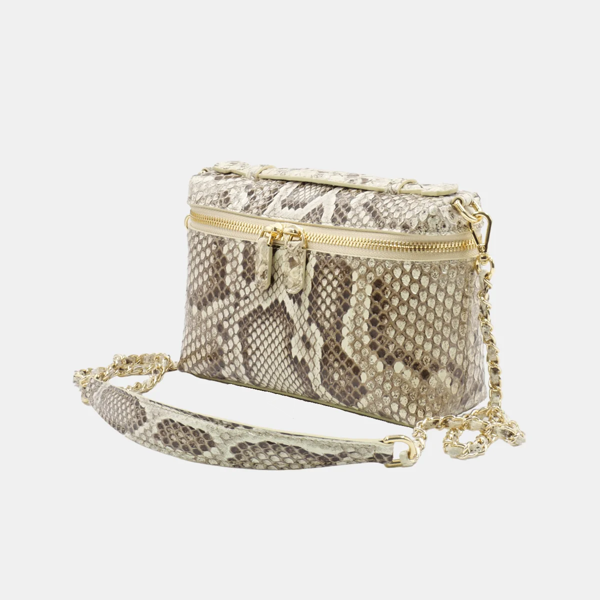 Selena is one of Bangkok Bootery best seller sling bags that is elegant in design and crafted by Thai experts. The genuine python snake belly leather is used for making this beautiful hand-made snake leather small size bag and the use of python belly flakes at the center of this charming design has made it unique. The collection of matte tone of snake skin in a variety of available colors gives you a color selection to fulfill your preferences.